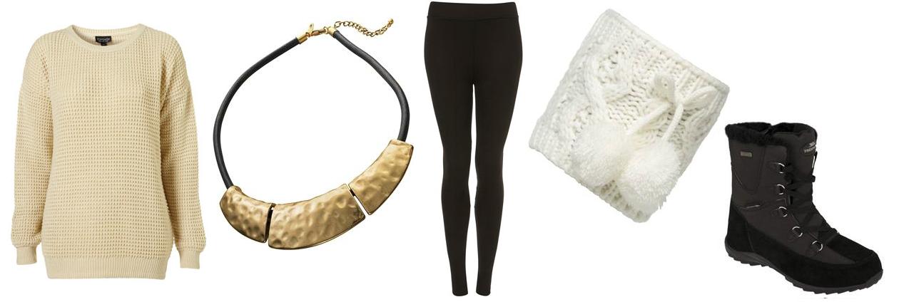 Black leggings can be purchase from any high street clothing store. The black Trespass snow boots are also seen here – https://emmarosetully.wordpress.com/2011/12/30/apres-ski-chic/