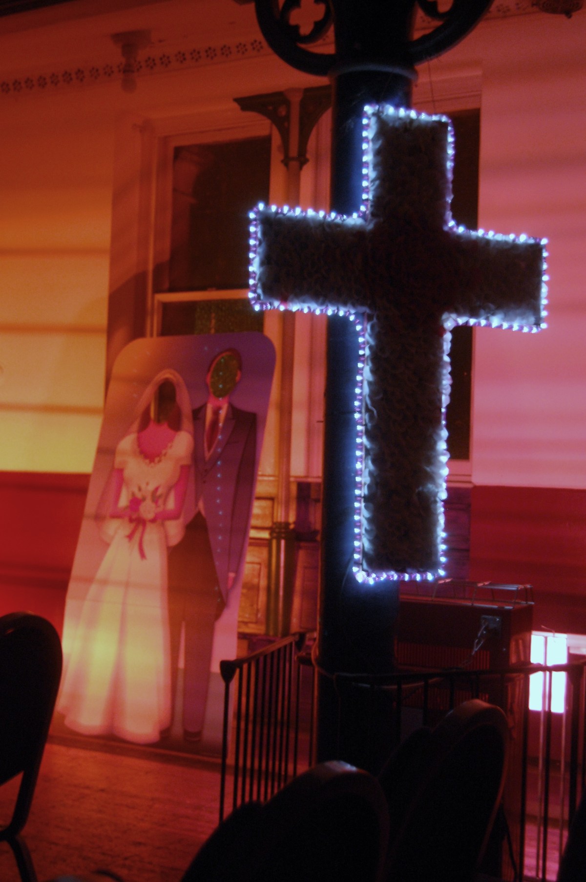Attention to detail – Rose petal crucifix, with fairy lights outlining the decoration. The perfect photo opportunity! …maybe not ideal for a first date!