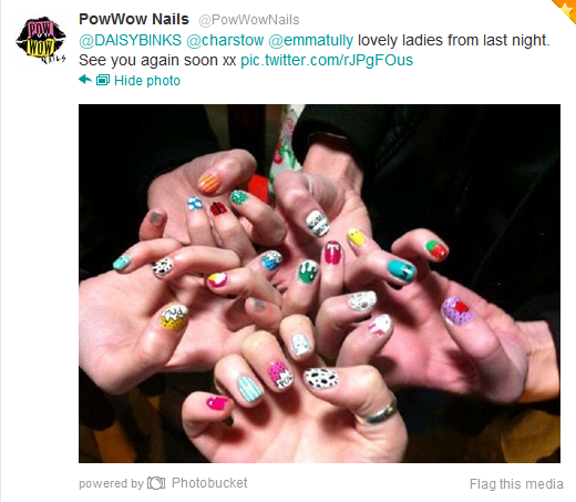 Visit PowWow Nails on Facebook and follow them on Twitter for all the latest events and updates. PowWow Nails also have a tumblr blog which is great for having a look at all their existing clients.