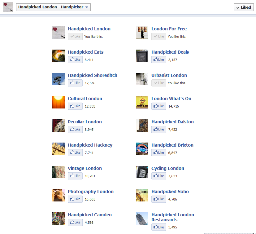Like: http://www.facebook.com/pages/Handpicked-London/192069374156614