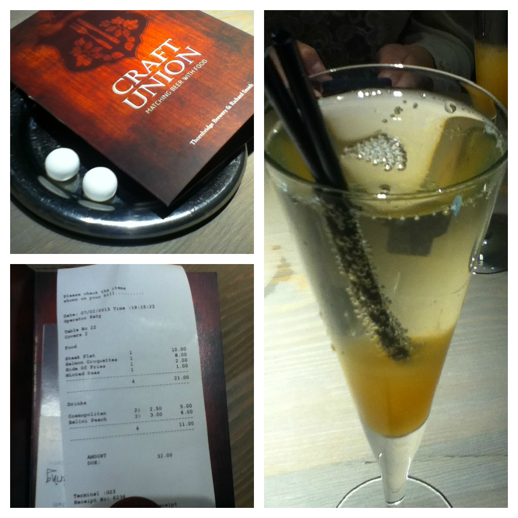 We were both more than happy with our choices of mains and cheekily opted for a second cocktail instead of a desert. Two Peach Bellini please, still available on the 241 so very reasonably priced at £3 each! I’ve never had a peach bellini before (a mixture of Prosecco sparkling wine and peach purée), always cherry or blackberry, but it was lovely – the cocktail menu offered a choice of different flavours so you’d be sure to find one to your taste.