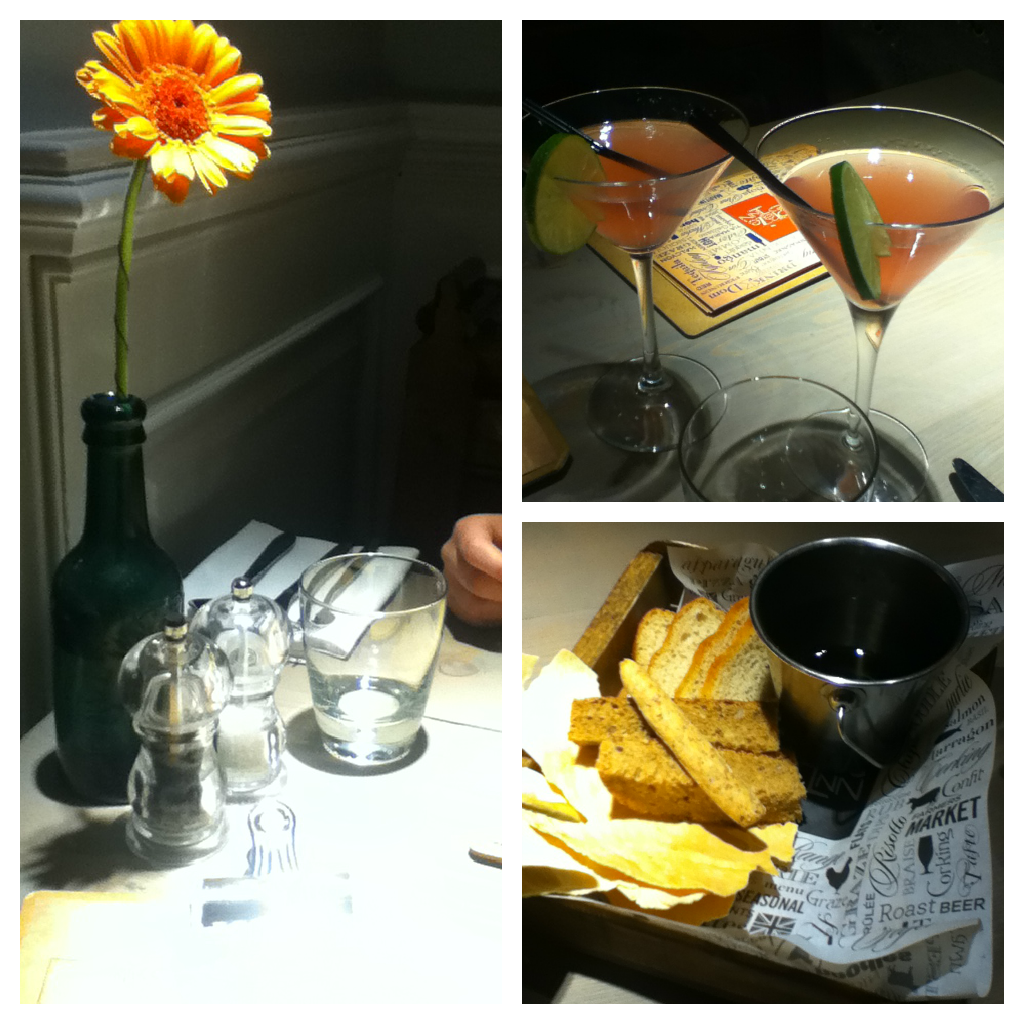 It was early afternoon on a Thursday, on entering the Graze Inn we were welcomed by the white and pale grey colour palette and bamboo lighting fixtures. The mood lighting behind the bar changed in and out of various colours which elegantly filled the room. As we arrived half an hour before our restaurant booking, we decided to order a drink and sit in the bar first, one Corona and a glass of Red Wine please. Luckily for us we were in time for Happy Hour which meant 241 on cocktails and bottled beers between 5 and 7 Monday to Friday – so once we got to our table at around half 5 we ordered a cocktail each.