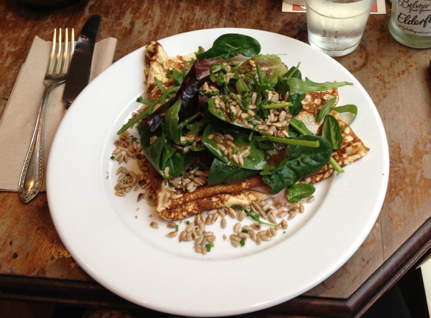 I sampled some of the Cheese and Ham Omelette, a less adventurous dish than the Galette, not something I would have chosen myself as omelettes have never been my eggy port of call. It was nice. But perhaps a little boring? Having little omelette experience to compare it too my review has little meaning, but my friend enjoyed the first few bites but seemingly slowed down as she became full. After licking (not literally) my plate clean, I asked her whether she needed my help finishing it. Sampling my second bite is was now cold and a little soggy. I asked my friend to critique it properly, and she said she’d hoped it would be a little crispier and that instead of layering the filling she would have preferred it would be mixed into the omelette. Some useful feedback, no?