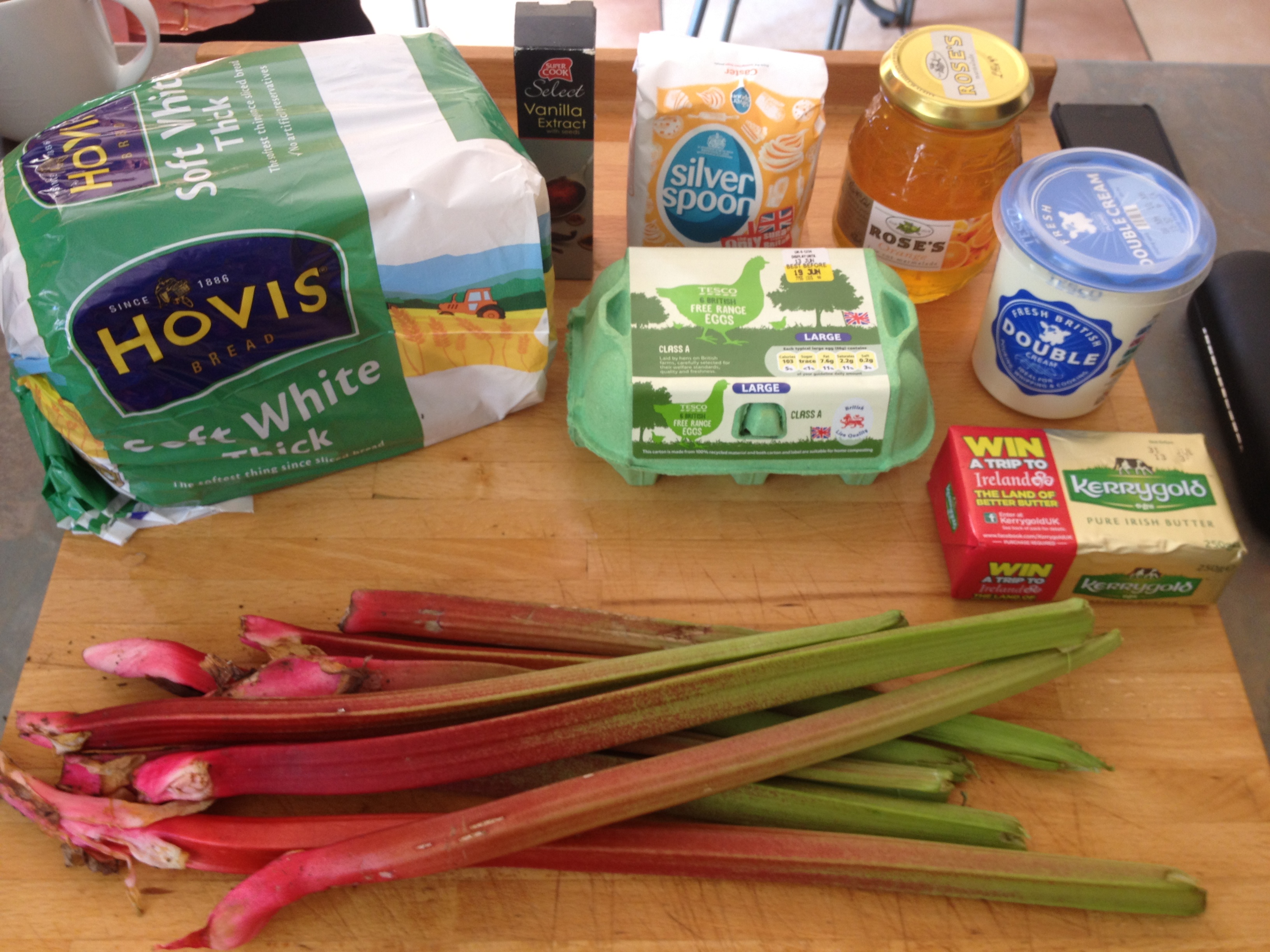 Whilst you wait for the bread to soak up the custard pre-heat the oven to 190 degrees celsius / Fan 170 degrees celsius / Gas mark 5. Bake the pudding for 25-30 minutes until puffed up and beginning to brown. Whilst the pud is in the oven, let’s make the rhubarb topping!