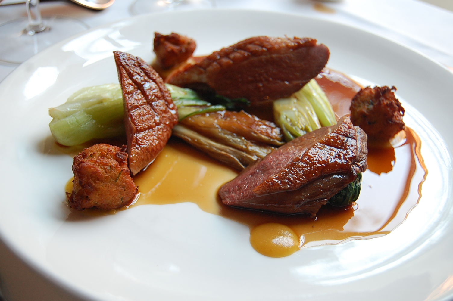My brother chose the Roast Duck Breast (served pink) with Orange and Soy Braised Chicory, Pak Choi and Plum Sauce (£18.95). Beautifully presented, three breasts of duck rested on the Chinese cabbage. A small jug of plum sauce was provided on the side and encouraged to drizzle over the meat. Again, I enjoyed a small taster! My father chose the Braised Shin of Derbyshire Beef with Potato Rosti, Portobello Mushroon and Spinach (£17.95) which I also had a taster of. It was lovely but a little too filling for me.