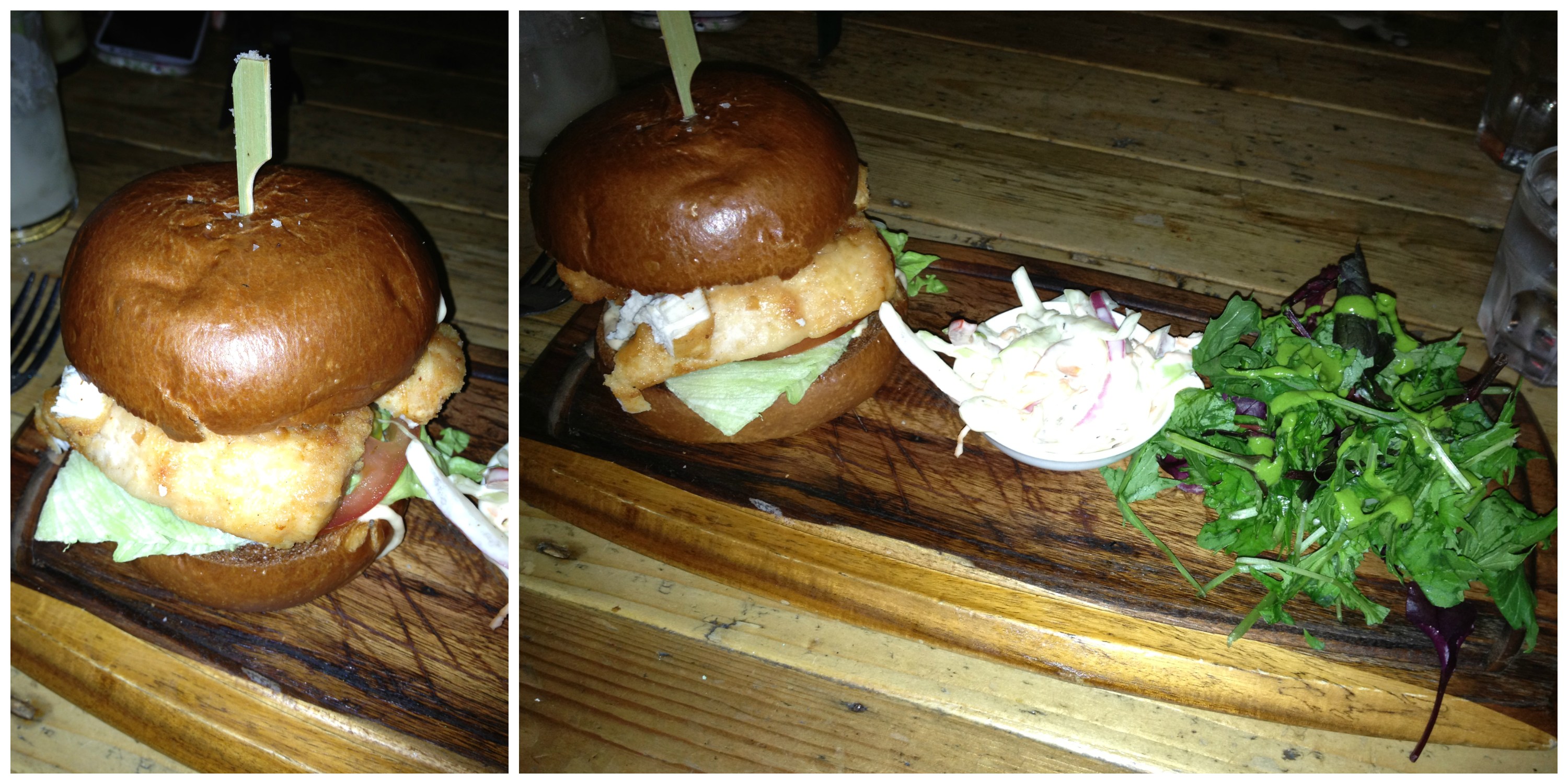 The bun burger was brioche bread layered with a citrusy mayo, lettuce, tomato and fried chicken – next to a small pot of coleslaw and mixed salad leaves. The chicken was spicy – maybe the equivalent to a Nandos medium. For many of you I’m sure that’s not considered hot but I’m a lemon and herb kind of girl. It was good! I’m glad it came with slaw to cool it down but maybe not enough. Also, the chicken was good – but maybe a bit chewy? Give me more slaw and some juicier chicken and it would have been spot on. Fair criticism I feel.