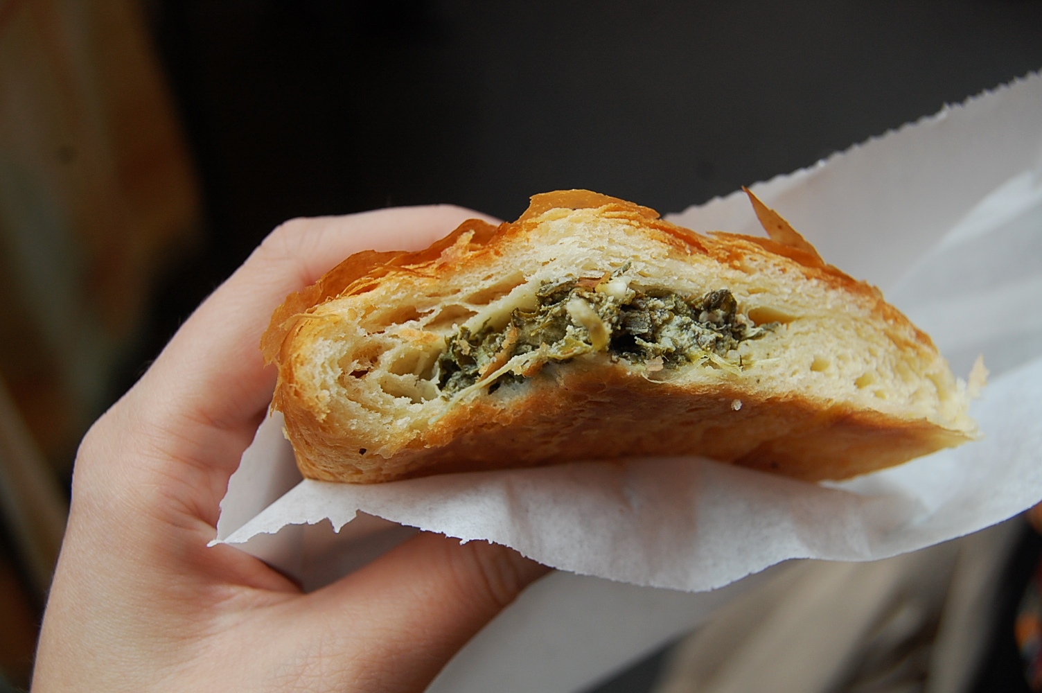 The next thing to catch our eye was a Spinach & Feta SPELT croissant from Oliver’s Bakery, we requested it to be cut in half by the baker so we could both enjoy a taster!