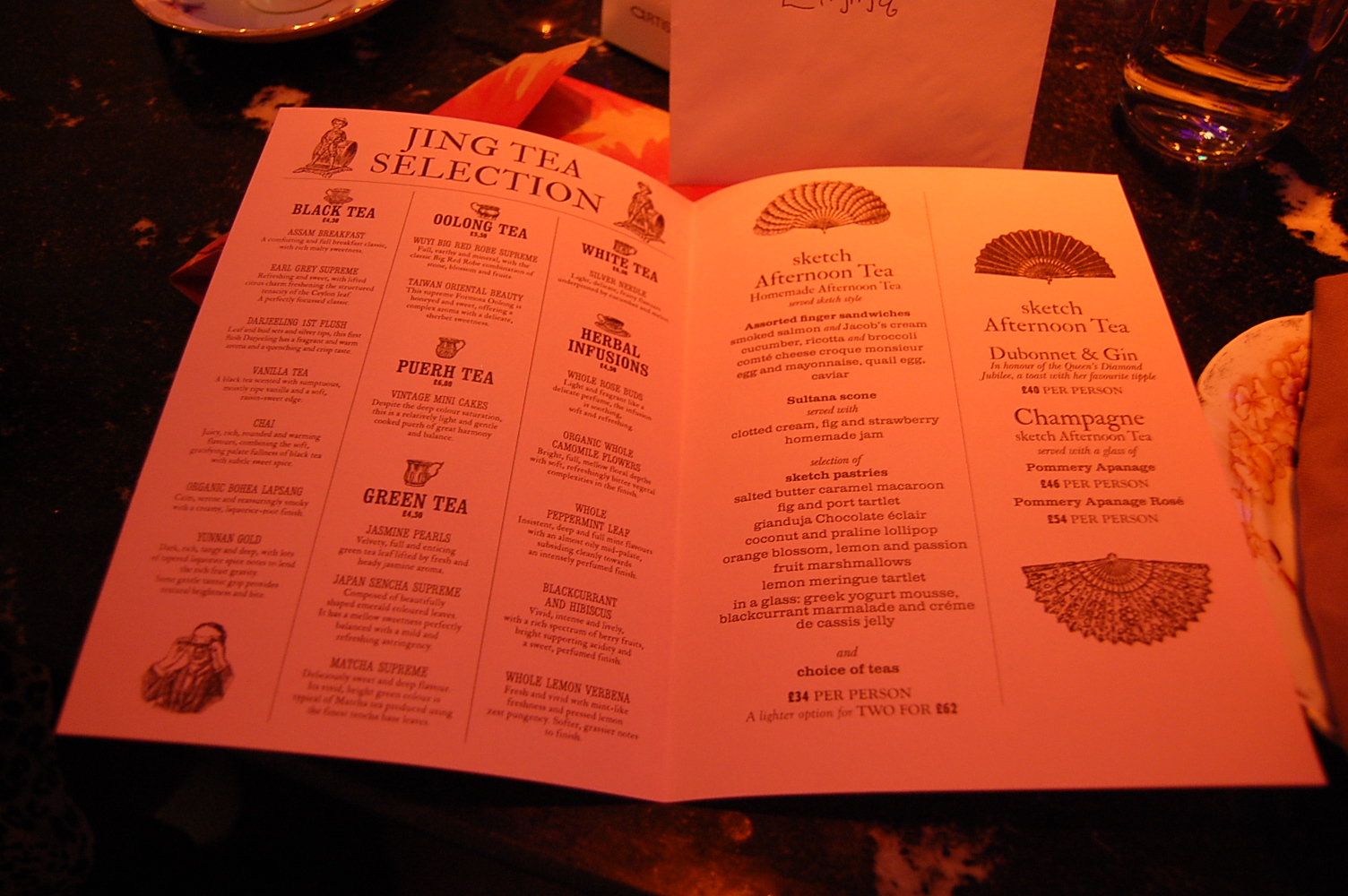 The menu offered over twenty different varieties of tea, each were served in pots with fresh tea leaves. You could order as many flavours as you wished for – space for all the teapots permitting!