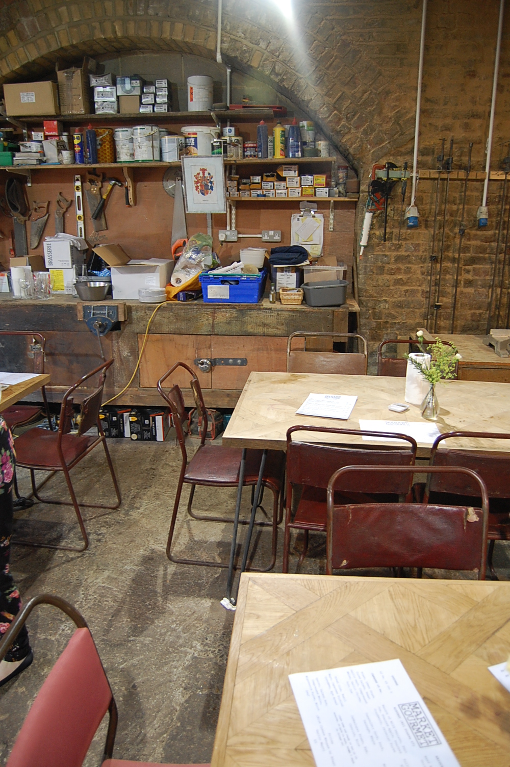 Luckily for us, it wasn’t busy at all early in the day so we had time (and space!) to wonder up and down Ropewalk deciding what to eat first. Toying between the idea of a Duck and Plum sauce waffle and a Pulled Pork Brioche bun, we decided to go for the Pulled Pork from Market Gourmet. Most of the stalls offered seating under the railway arches which was just delightful – they all used the space in such an alternative and interesting way. Market Gourmet merged dining tables into a wood workshop, mixing eating with creativity and craft.