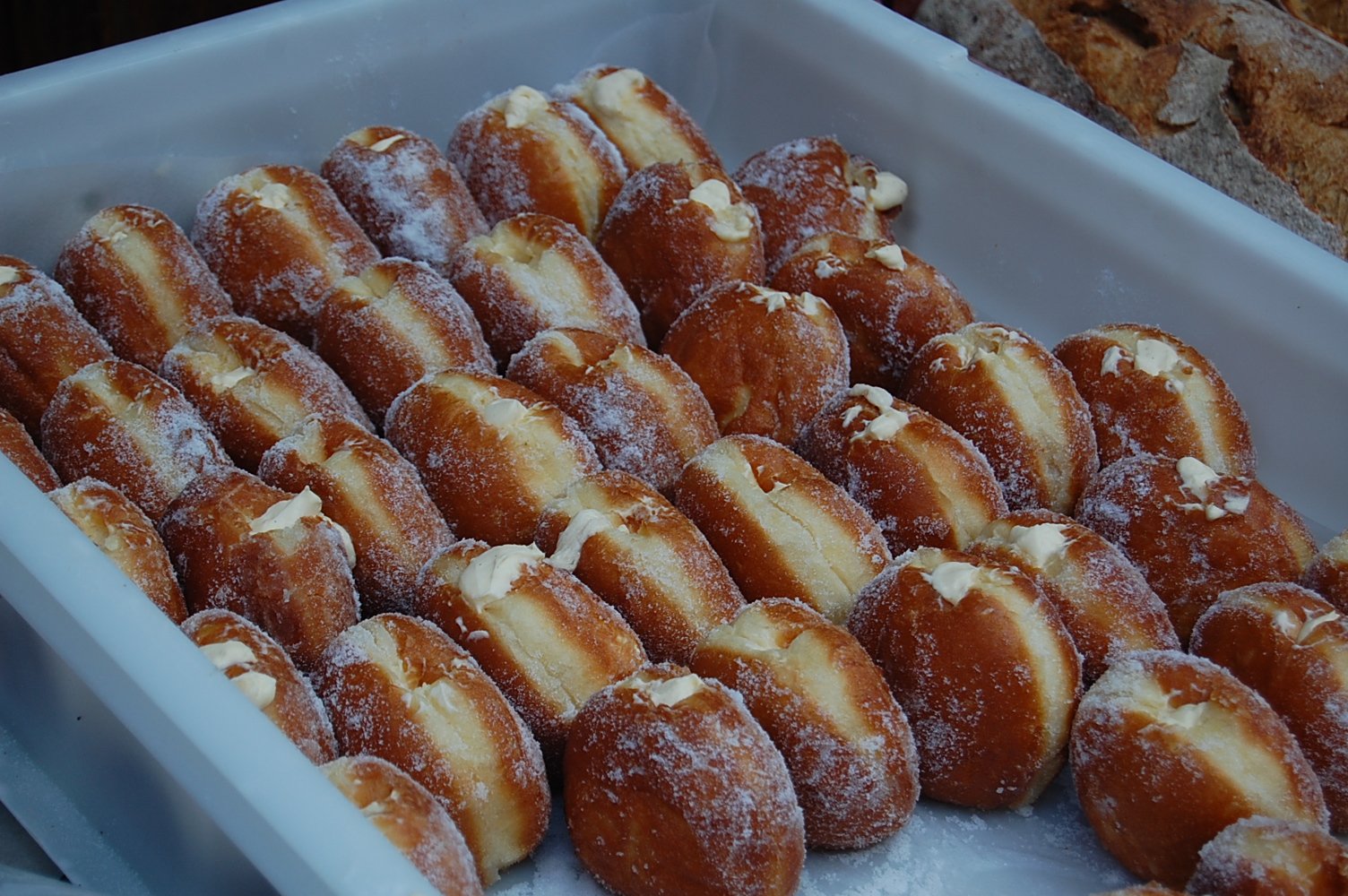 In infamous St John’s Bakery has a stall at Maltby Market, aside from fresh breads and pastries it also sells doughnuts. Fresh, custard doughnuts – known for being the best doughnuts around, we had to get one. I’m pleased to tell you that they lived up to our expectation. The custard was foamy and light and the bread was moist and sugary, delicious!