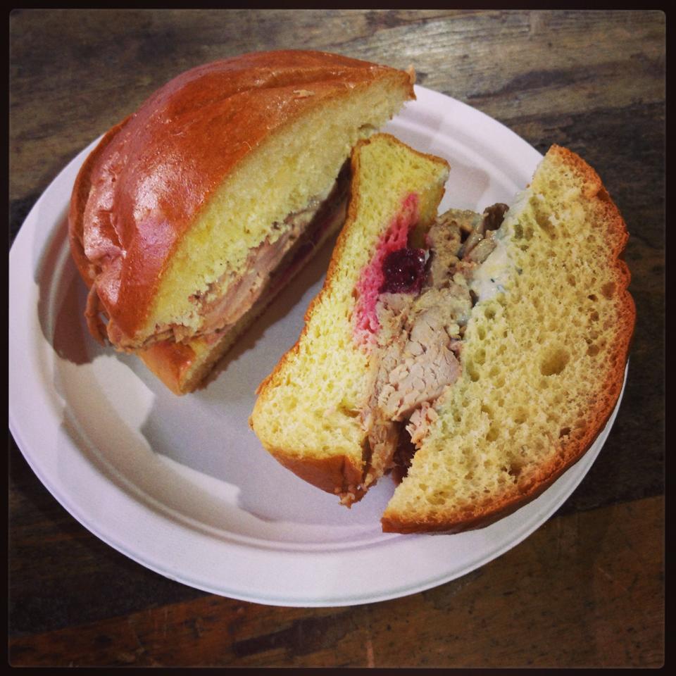 The Pulled Pork, Cranberry and Blue Cheese Mousse was served in a Brioche Sandwich Bun.Succulent and juicy pork filled the centre of the bun paired with the preserved cranberries and soft blue cheese mousse. To be honest, the broiche bun was a little of the stale side, but it was nice nonetheless. Because the bun wasn’t very fresh it made the sandwich a bit dry which meant I needed a drink with it but the stall had run out of soft drinks, and at 11am on Sunday I didn’t want anything else!