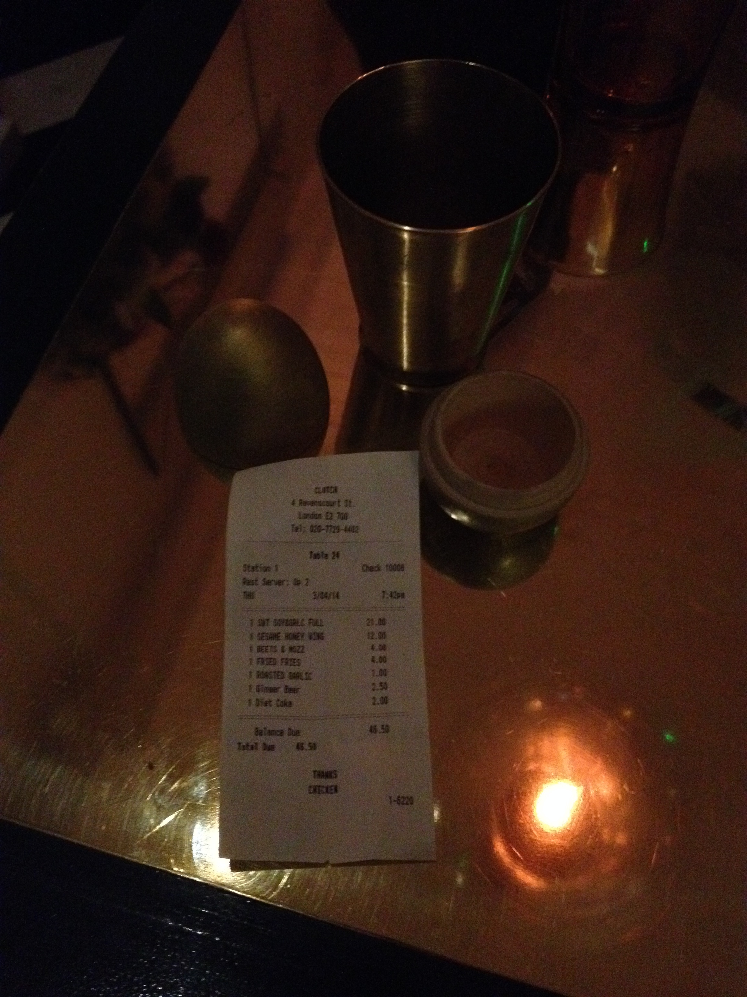 The bill was presented to us in a cute little golden egg which was held inside a silver cup. Open the egg in half and you’ll find your receipt neatly folded inside.