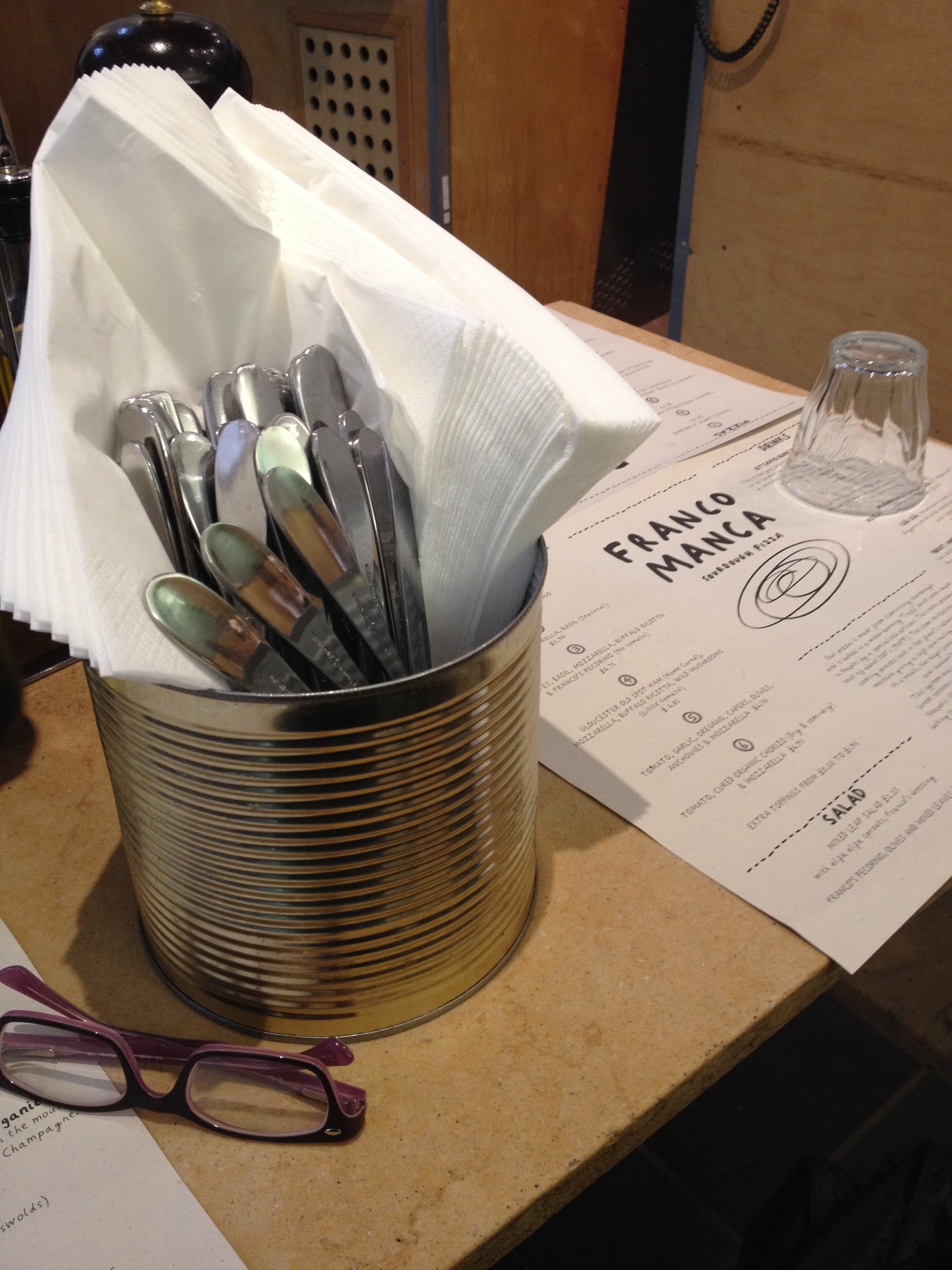 Every critic, blogger and Londoner has sung the praises of Franco Manca. Once, I even heard someone describe it as Sourdough Pizza Heaven and with those kind of reviews I’d be silly not to find the time to try it. Second to that, the original restaurant is situated along Market Row in Brixton – 10 minutes from my house. So my flatmate and I decide to meet there after work on a Thursday evening for a quick bite.