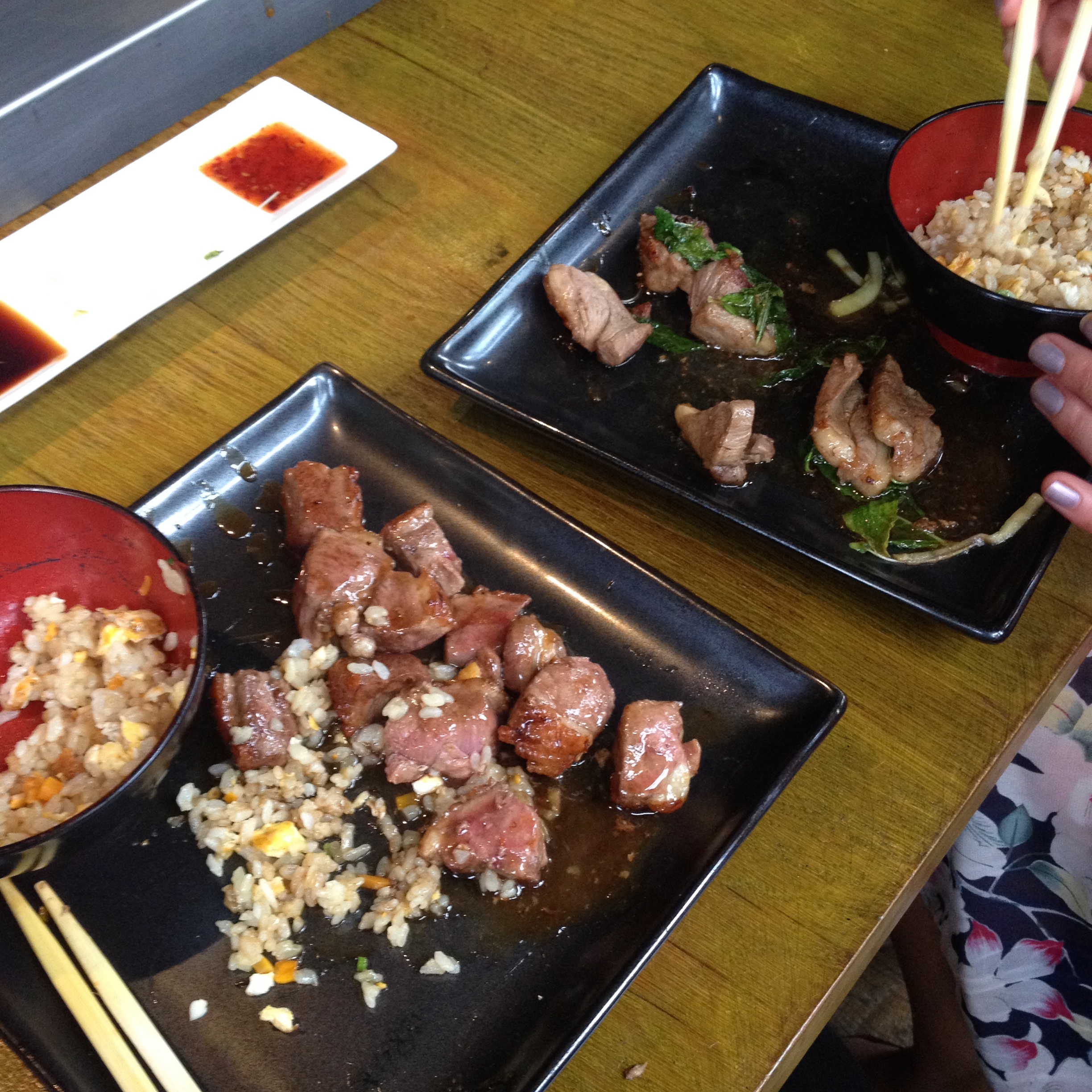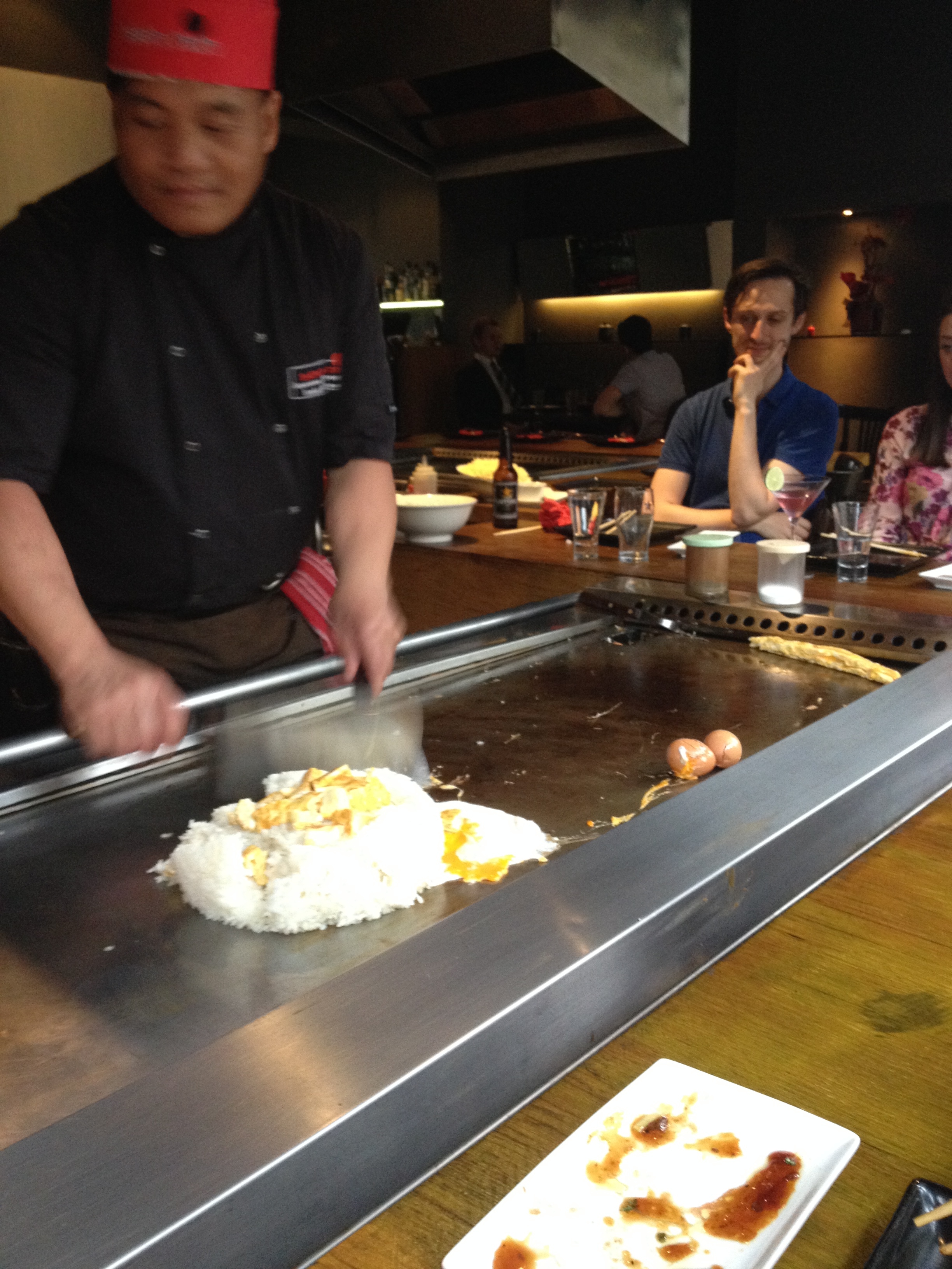 Avoiding any of the sushi dishes on the menu, (it was raining outside so I think we were after something warming) we chose our teppanyaki dishes. With the intention of sharing, I went for the duck and my dining partner chose the lamb. Whilst we were busy munching our starters our chef had rustled up some egg fried rice! Everybody at the table received a portion and it was damn good!