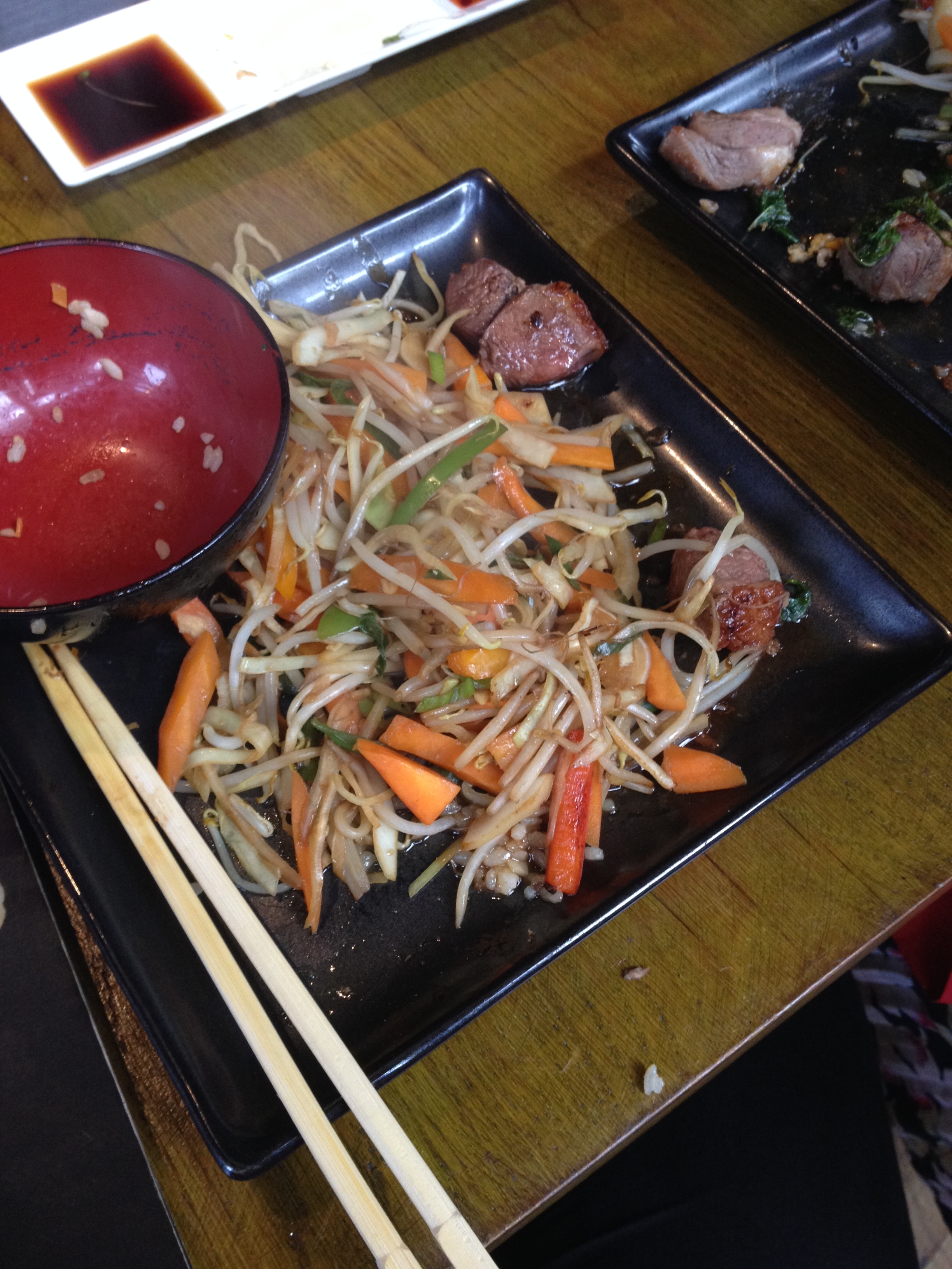Last up from the grill – stir fry veg with bean-sprouts, peppers, beans and carrots. By this point we were both quite full, but it was a welcome finale to what had been a meal full of variety and interest.