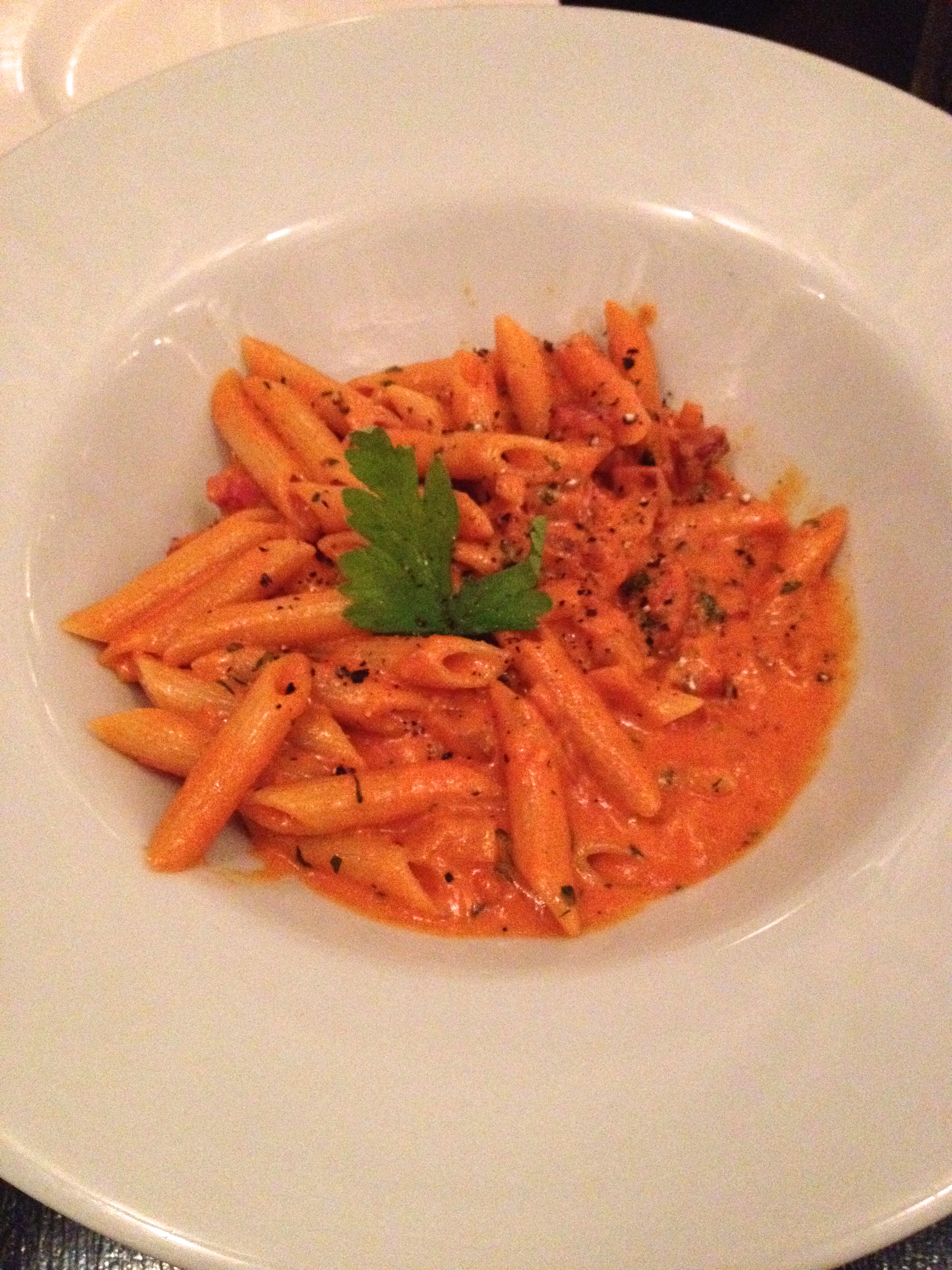 Although penne alla vodka is a relatively simple dish made up of fresh tomato sauce, cream, pancetta, onions and a splash of vodka it was absolutely delicious. The pasta was cooked beautifully al dente, the only negative was that the pancetta was a bit too chewy, slightly overdone.