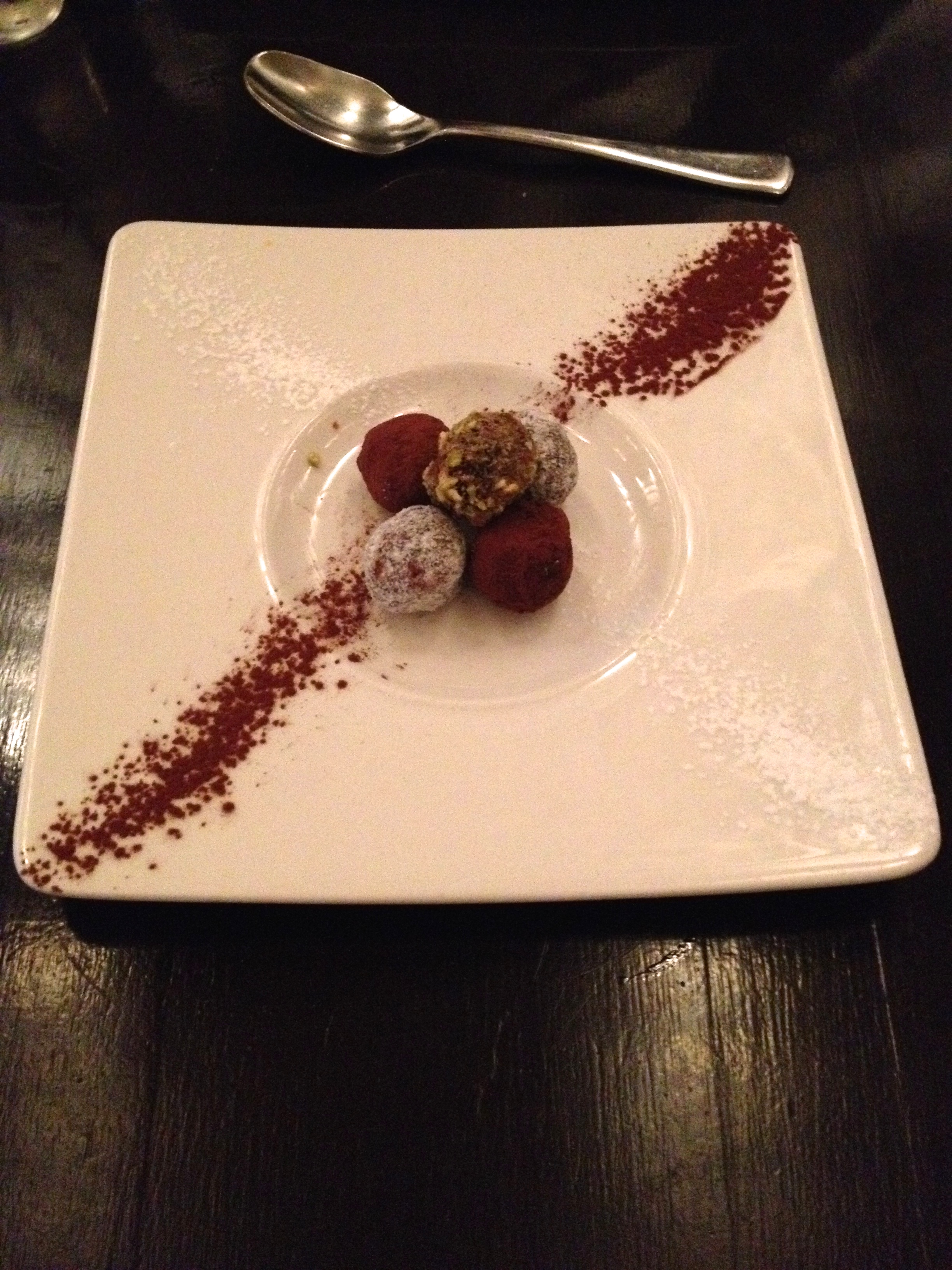 For dessert my dining partner choose the Tartufi de Cioccolato, a selection of handmade truffles which judging by the noises he made when he was eating them – I think they were enjoyable!