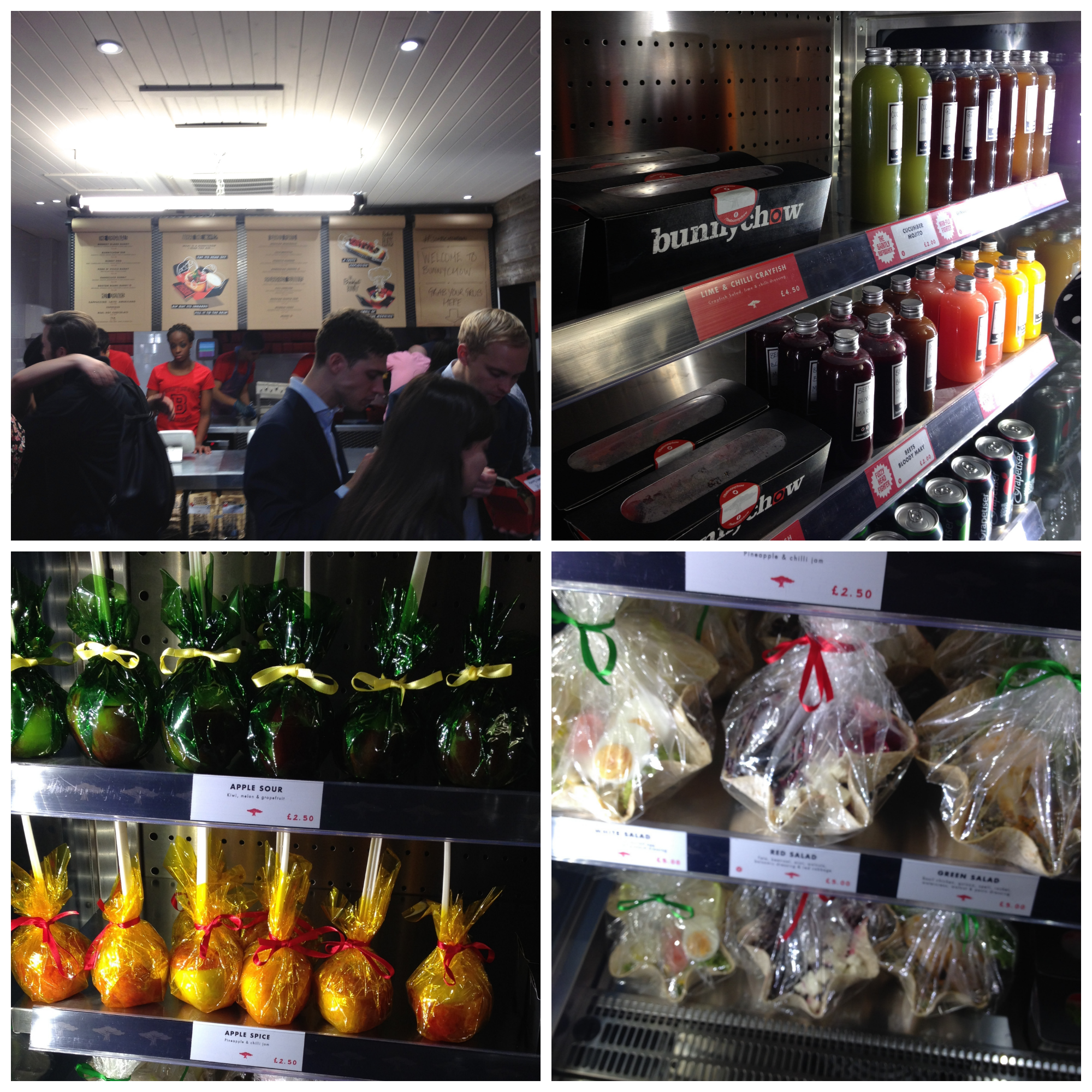 The interior to Bunnychow is similar to that of a Leon or (dare I say) Pret. It has more character mind you, but in general the set up is cold food and beverages in a open fridge to one side and a fast food counter style queuing system for hot food orders and payment.