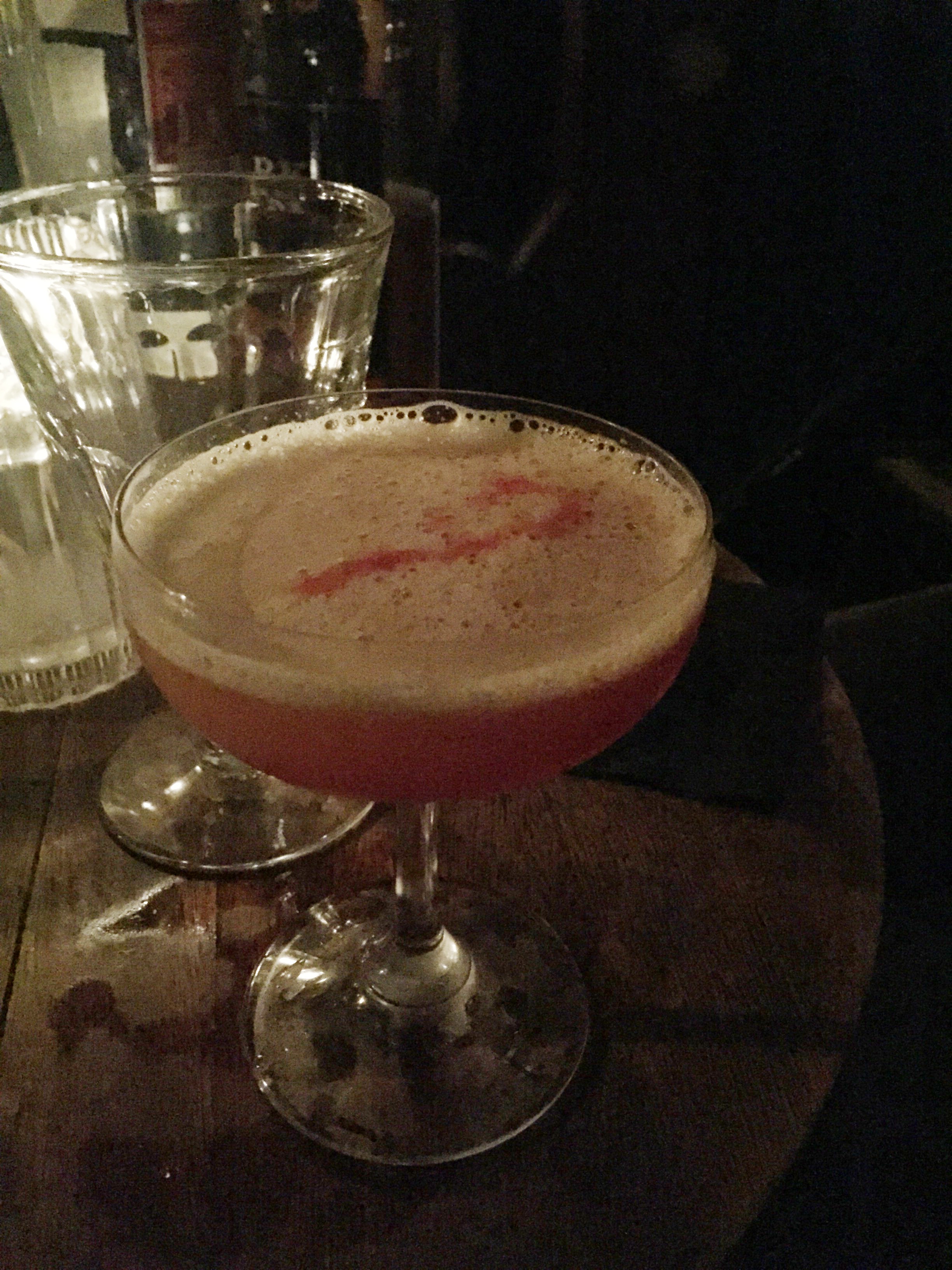 I requested something with elderflower and lycée. This resulted in my favourite cocktail of the night, garnished with a sprig of rosemary, a vodka lycée martini style cocktail. It was very strong, presented in a wee vintage champagne coupe.