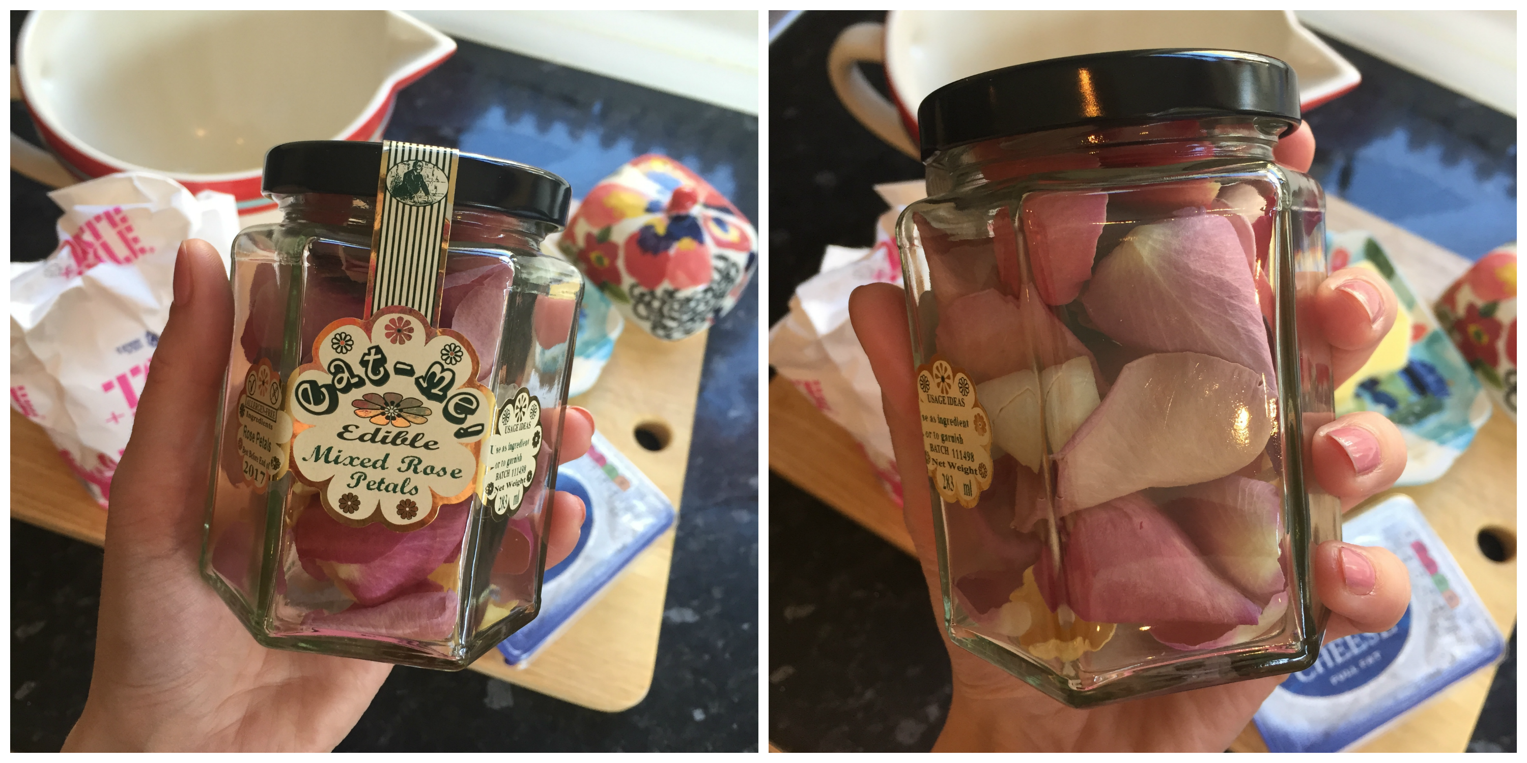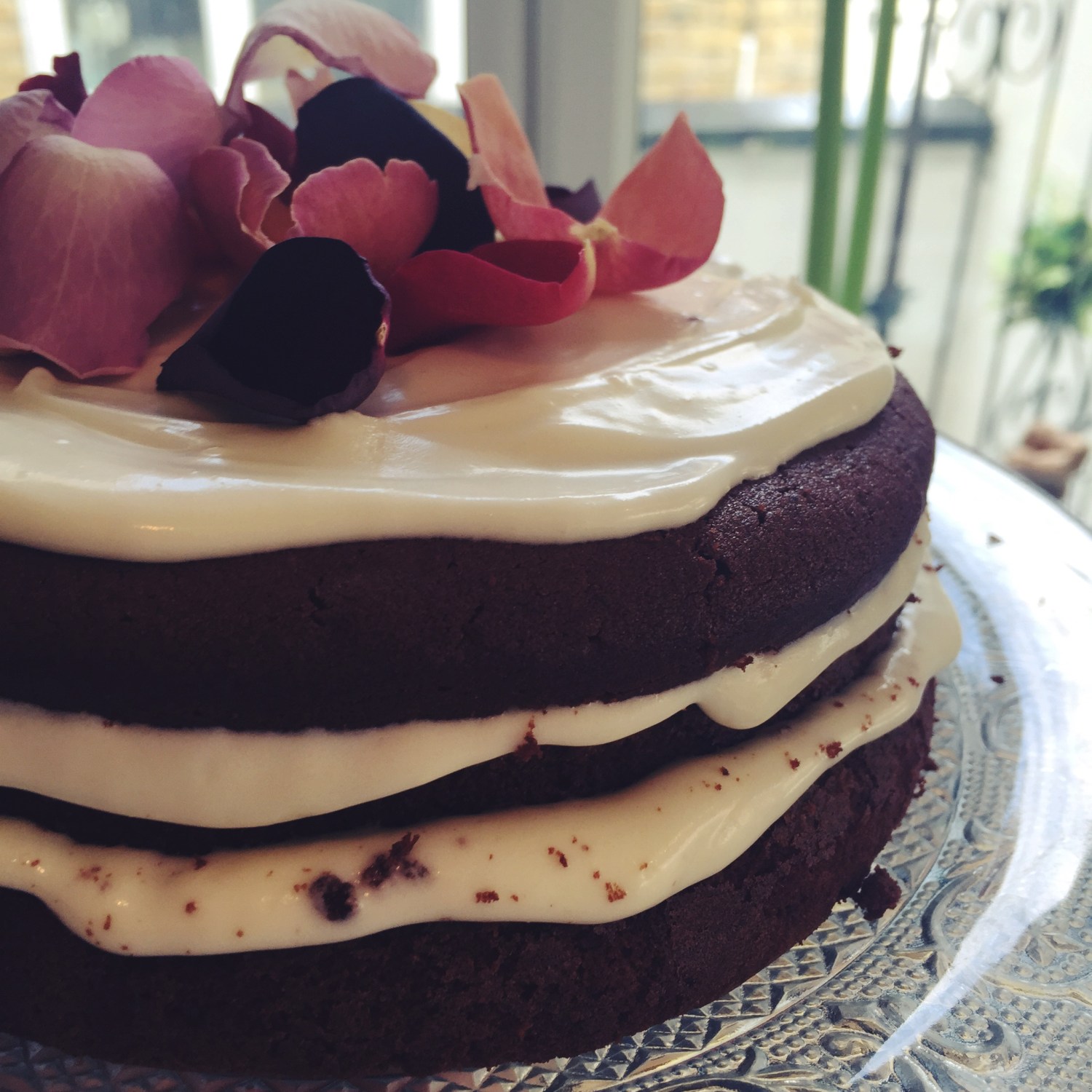 Finally you can be as creative as you like when it comes to decorating the cake! I used these edible rose petals from Uncle Roy’s Comestible Concoctions.