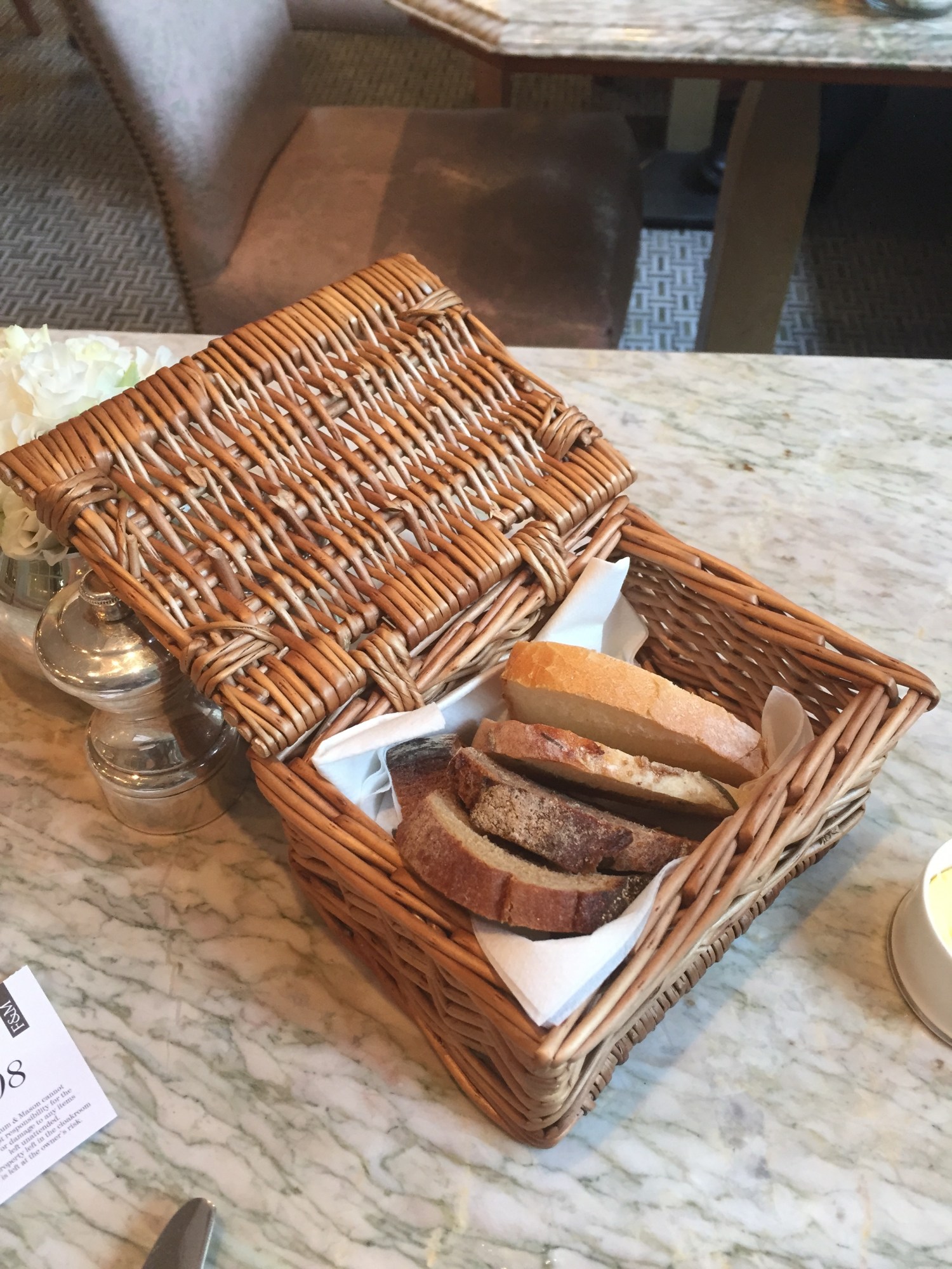 After we’d ordered, a delightful little “Fortnum’s Hamper” was delivered to our table, full of fresh bread. It contained four slices, including white, granary, soda bread and a fruit loaf. All were truly delicious, served with F&M branded butter.