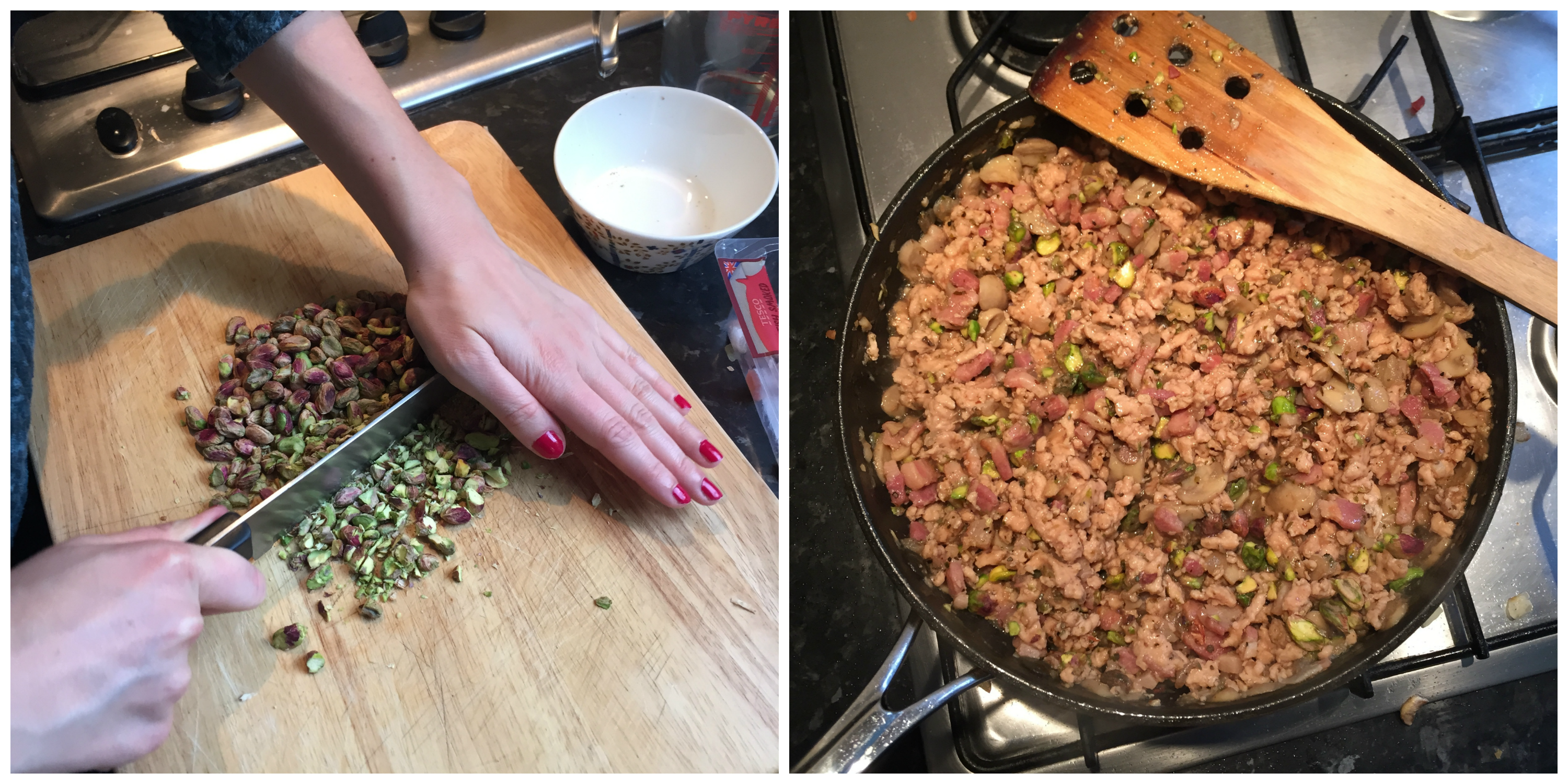 Tom Kerridge is an English chef and owner of the first gastropub to gain two Michelin stars, The Hand & Flower in Marlow. He is well known for balancing tastes and textures, and using familiar ingredients to create big, intense flavours. Over the bank holiday weekend, I thought it would be a nice idea to delve into his latest cookbook ‘Tom Kerridge’s Best Ever Dishes’ (2014) and try his Chicken, Bacon & Pistachio Pie. The recipe uses Chicken Mince, see my tips on where to get this from in step 2, and filo pastry (found in the freezer aisle!) to create a pie for 6 people. Best served with mash and greens. Enjoy!