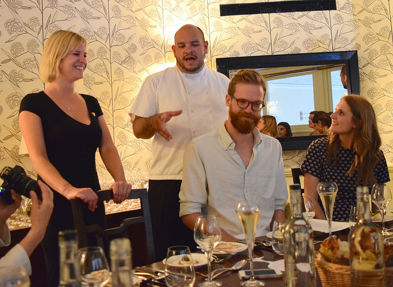 Next to the table was a portion of spiced squid served on slate, with a smear of Chef Eddie Perez’s special sauce. The first wine of the evening was a Gruner Veltliner, Loitmer 2013 which is an Austrian dry white wine. Please excuse my ignorance when noting the following wine pairings – there is no denying that I’m a “I’ll have your cheapest bottle please” kinda girl! That made the evening even more enjoyable though as I had the chance to learn something new. I also fell in love with two of the wines, so keep reading to find out more.