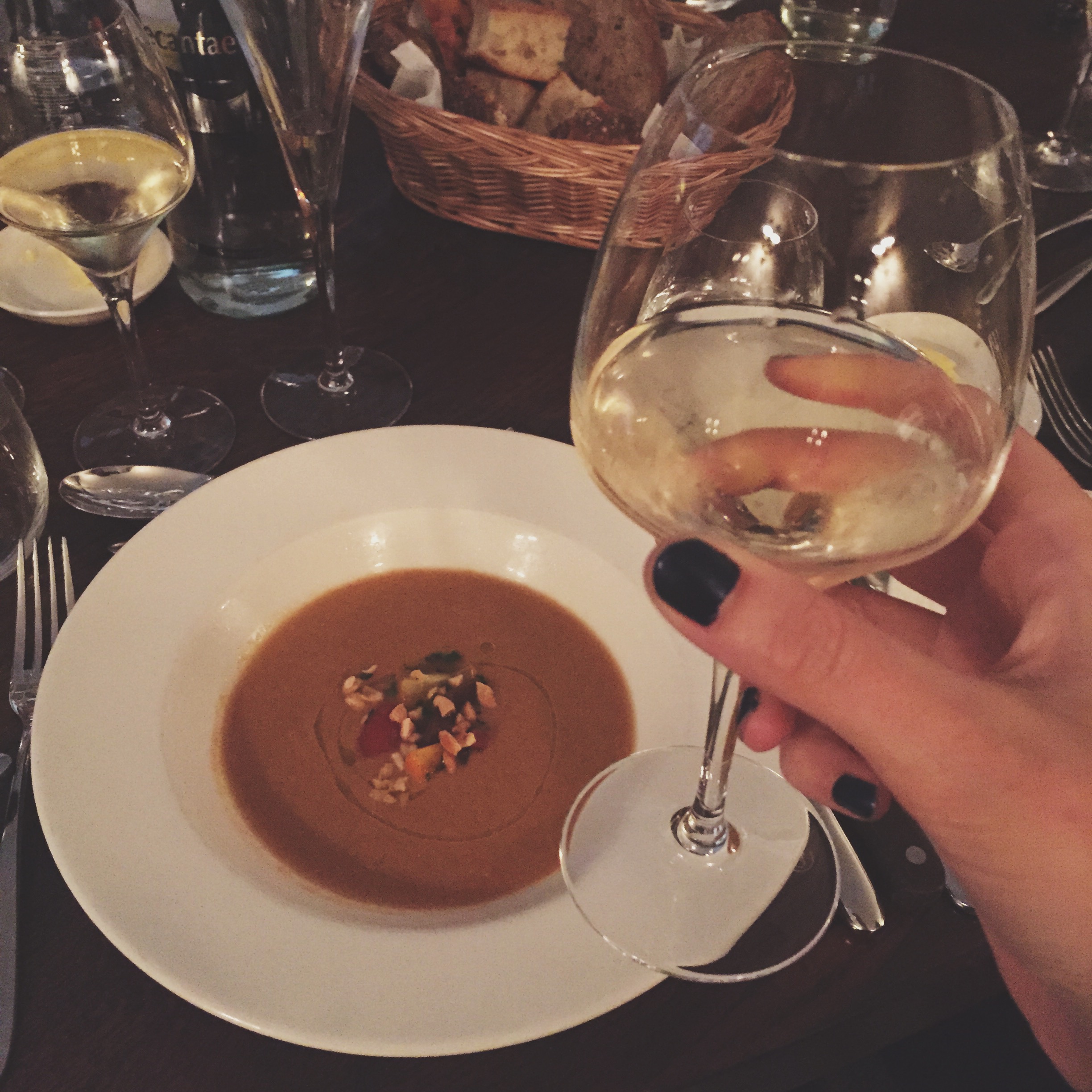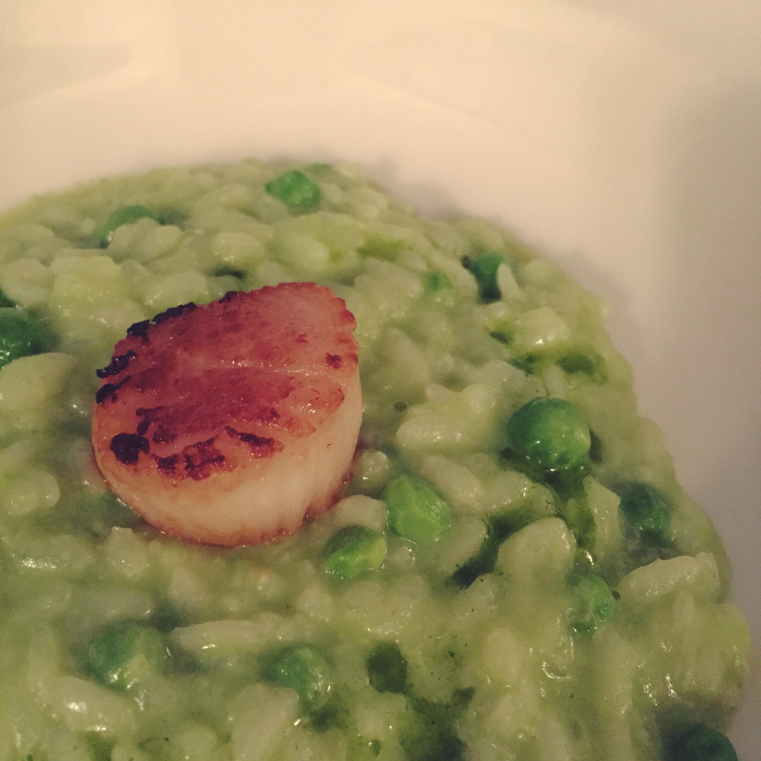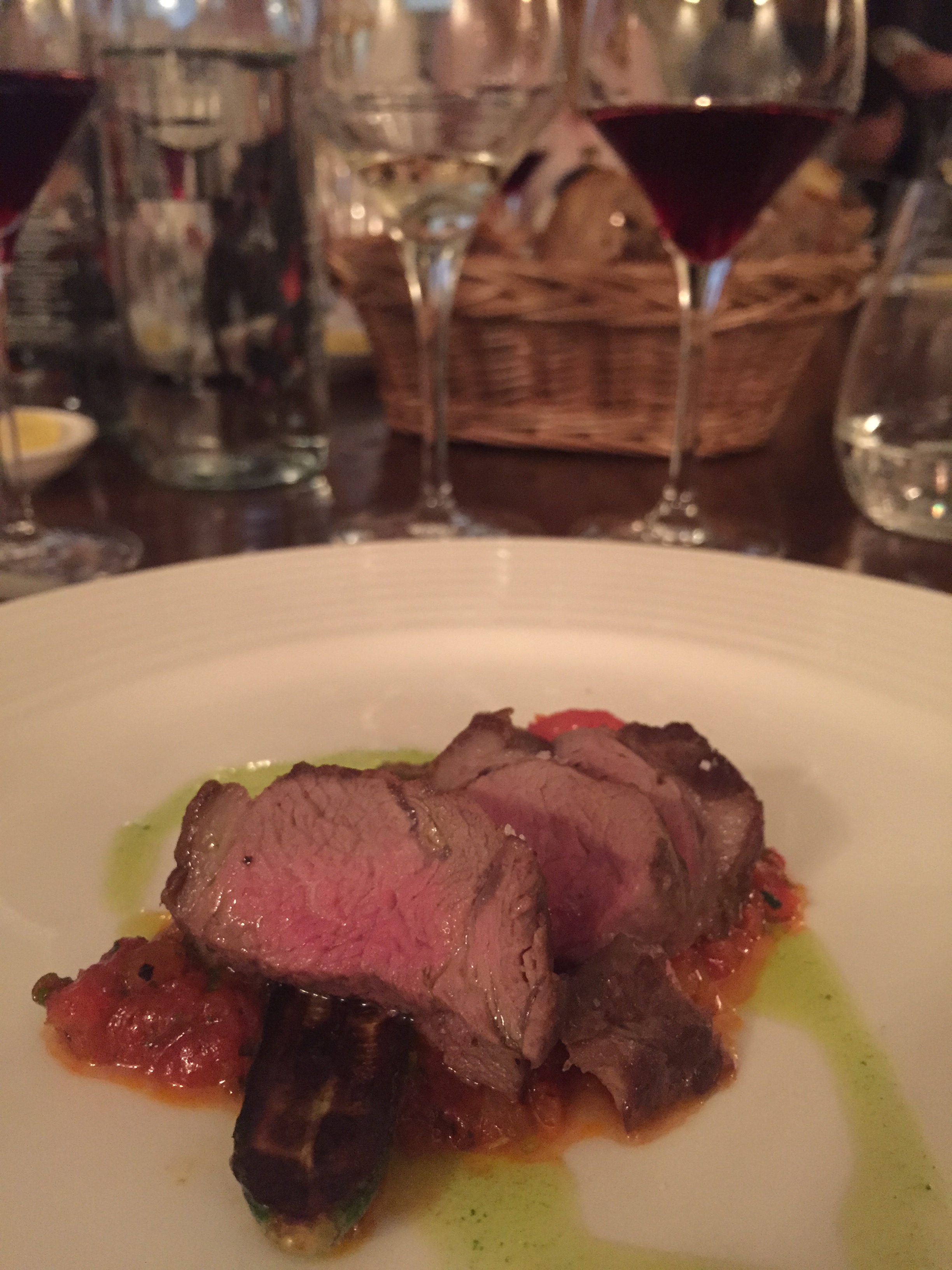 A beautifully creamy risotto followed, made with pea and ricotta and topped with a seared scallop. It was so good – very buttery and warming. Complimented with a cold glass of Louis Moreau Chablis, a dry white wine renowned for the purity of its aroma and taste.