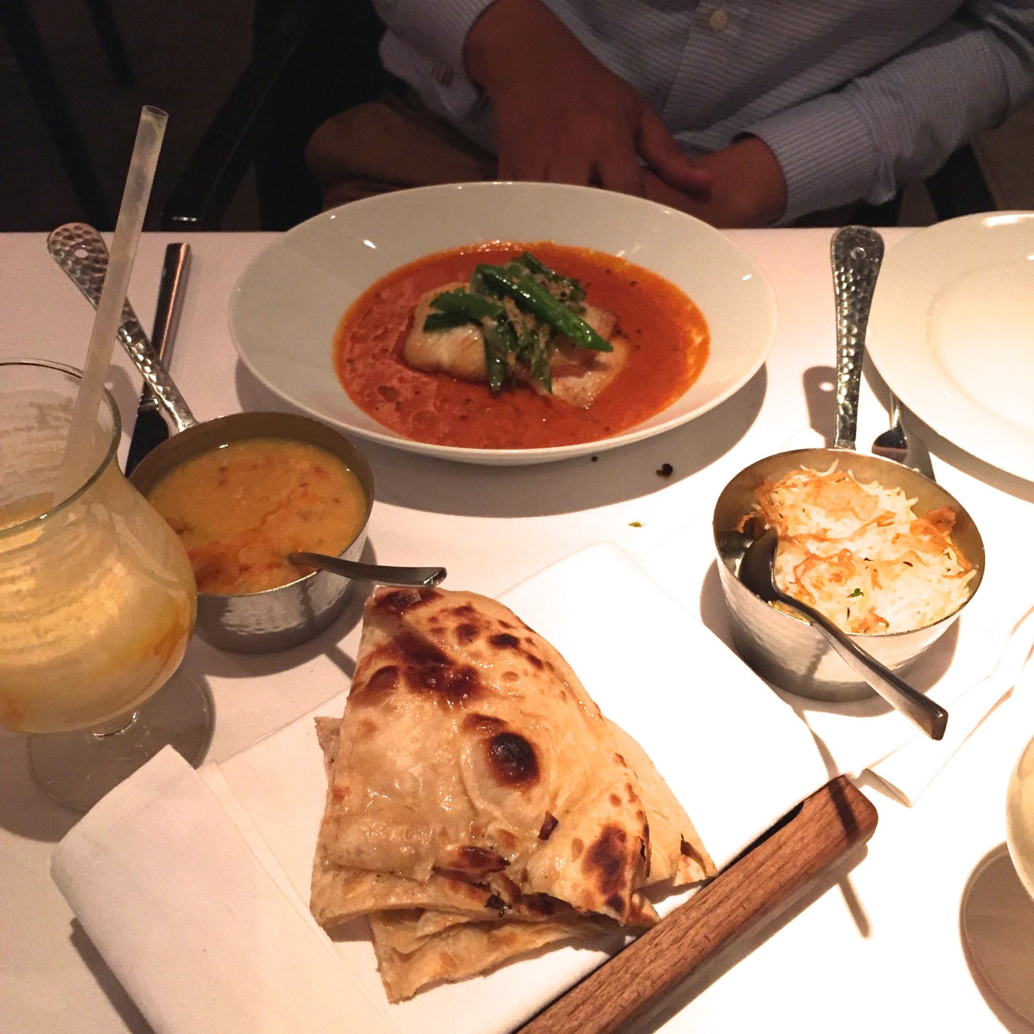 All main courses are served with Lentils and Tandoori bread and rice which is a nice touch. My dining partner chose the Curry Leaf and Black Mustard Tempered Plaice which I wish I’d also chosen. I tasted a little and thought it was delicious, served with sugar snap poriyal (poriyal being a Tamil word for fried or sauteed) and malabar sauce, which is a coconut sauce that’s tinted with turmeric and lifted with lime juice.