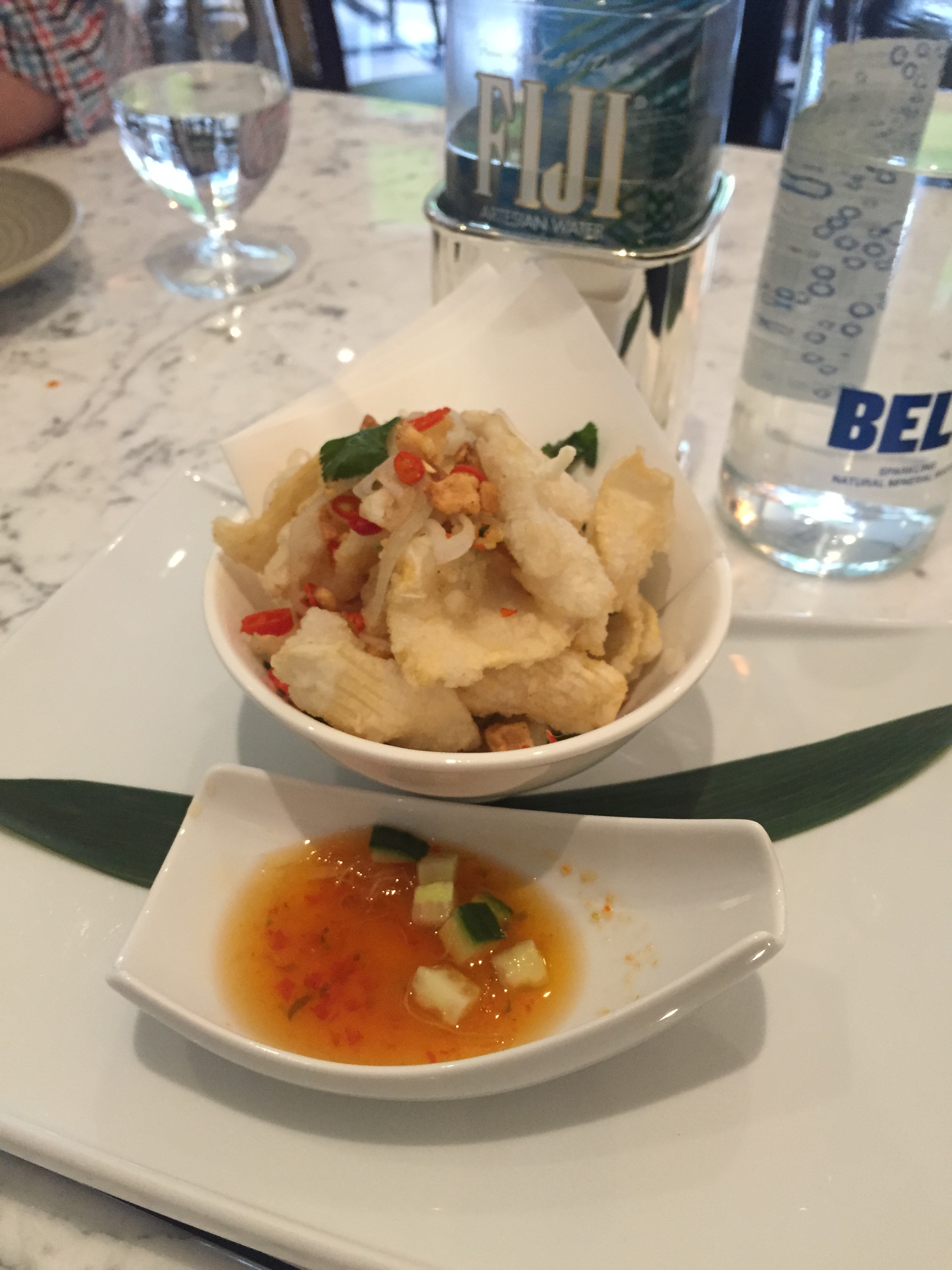 The pan-Asian menu offers starters, small dishes, rolls & salads, dumplings, signature dishes, sides and happy endings (aka desserts). We kicked things off by ordered still and sparkling water, Vietnamese crackers & fresh salsa and Edamame with chilli garlic.