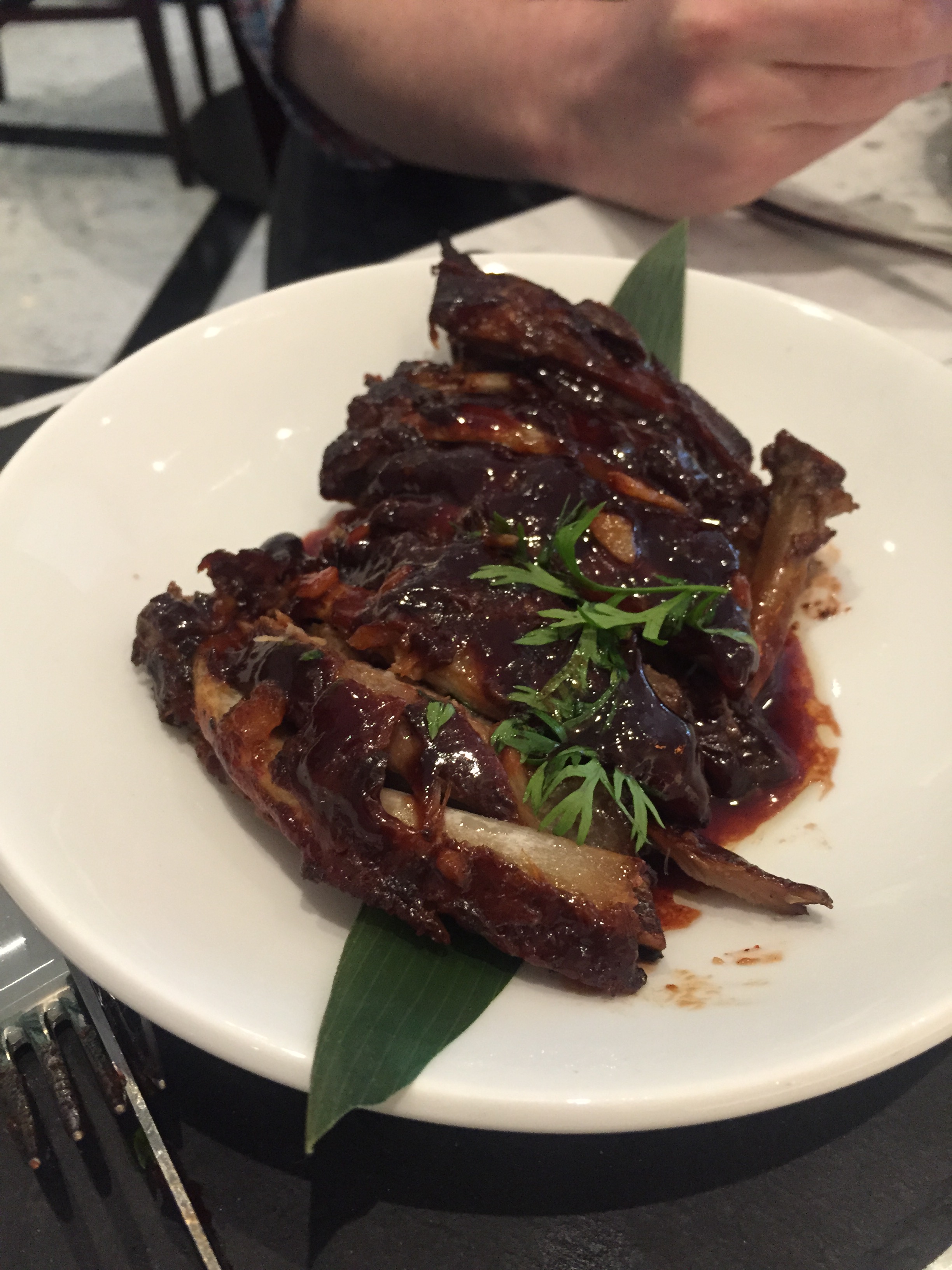 To follow we tucked into a small bowl of Crispy baby squid flavoured with chilli and sea salt – it was simple but exquisite. I was blown away by the smokiness of the Jasmine smoked chilli glazed ribs – I struggled to control my manners by taking more than my fair share of tender meat as it fell off the bone.