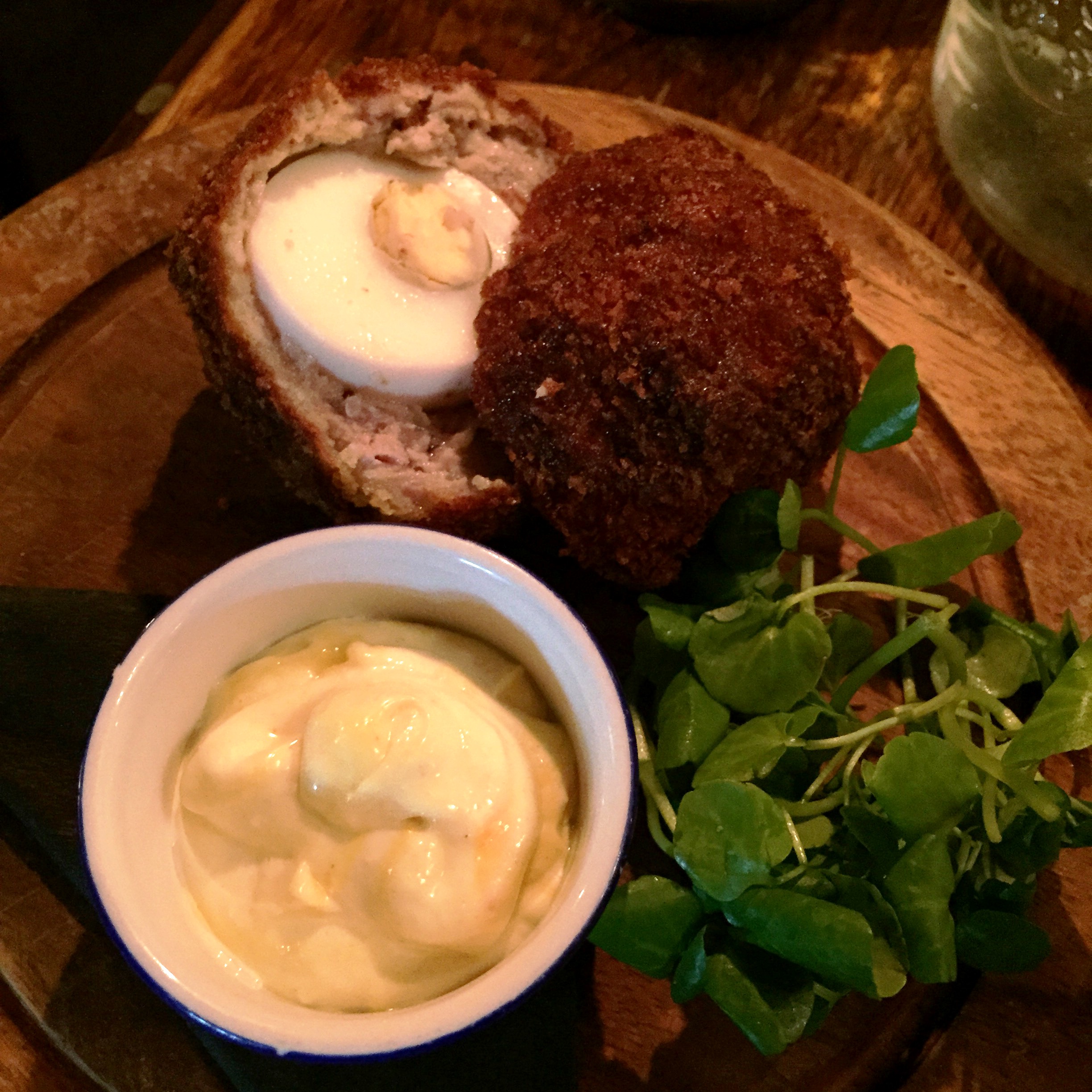 Scribbled at the top of the specials board were scotch eggs which arrived on a round wooden board and disappointingly lacked a runny yolk. Ever since I discovered Scotchtails (aka the best Scotch Egg you’ll ever eat) my expectations for a good scotch egg have been heightened so I can’t blame the Abbeville for producing a very average egg.