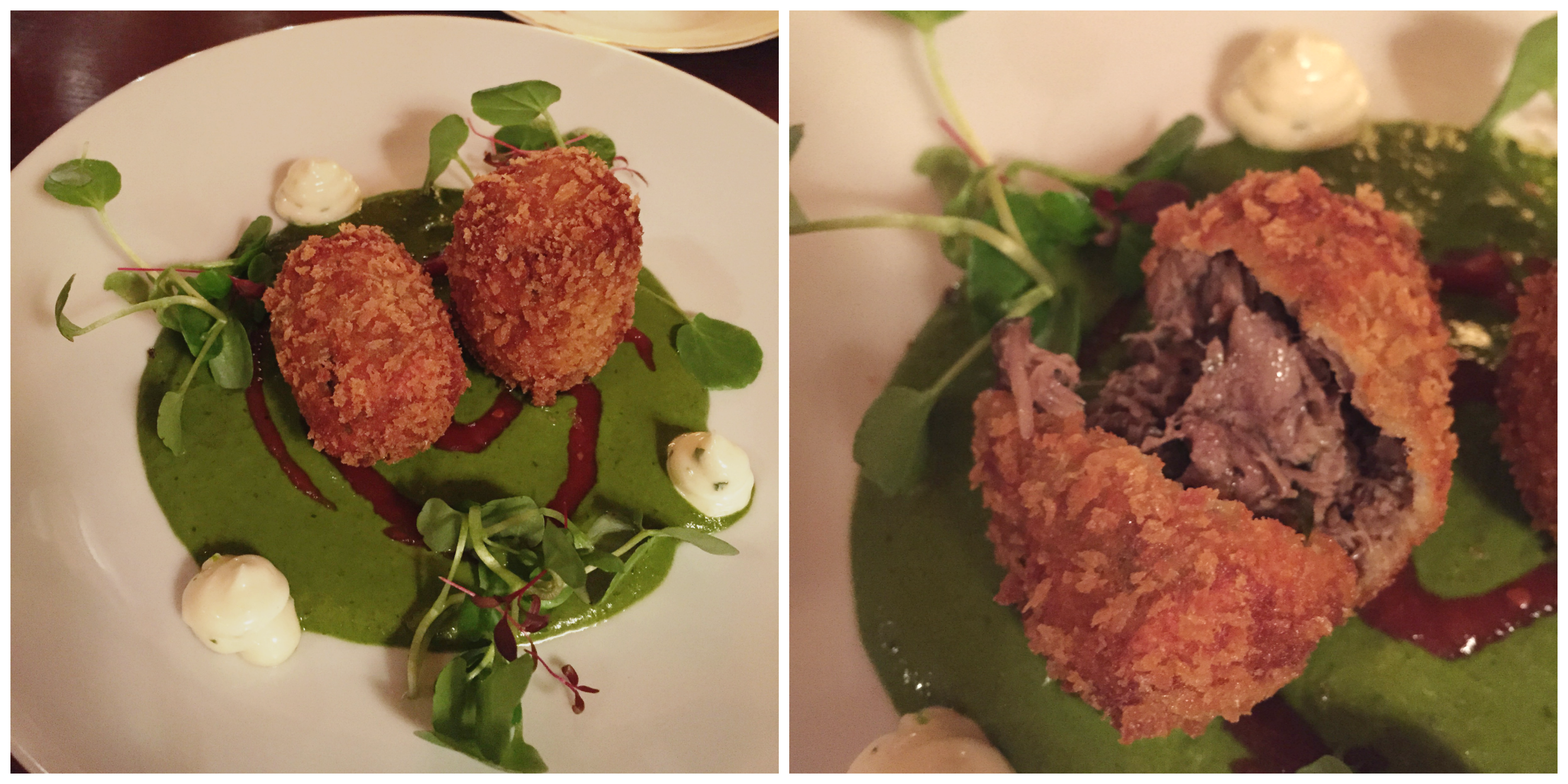 I chose the lamb neck croquettes which were beautifully resting on a bed of lemon spinach, dotted with mint aioli.