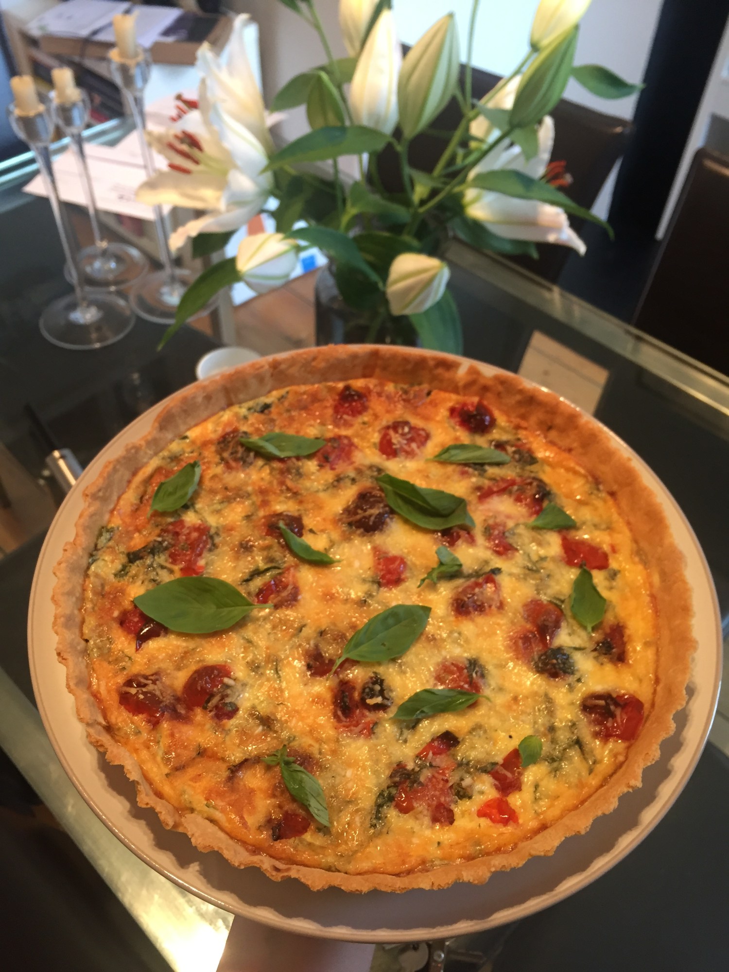 I grew up on quiche Lorraine, it was one of those things I ate too much of as a child (like pork chops) so I sort of went off it. But then I was browsing BBC Good Food one day, searching for recipes with cherry tomatoes in and came across this beauty. I decided to try out this recipe and am a complete convert. This is now one of my favourite recipes full of Italian flavours, roasted vine tomatoes, fresh chopped basil and Parmesan.